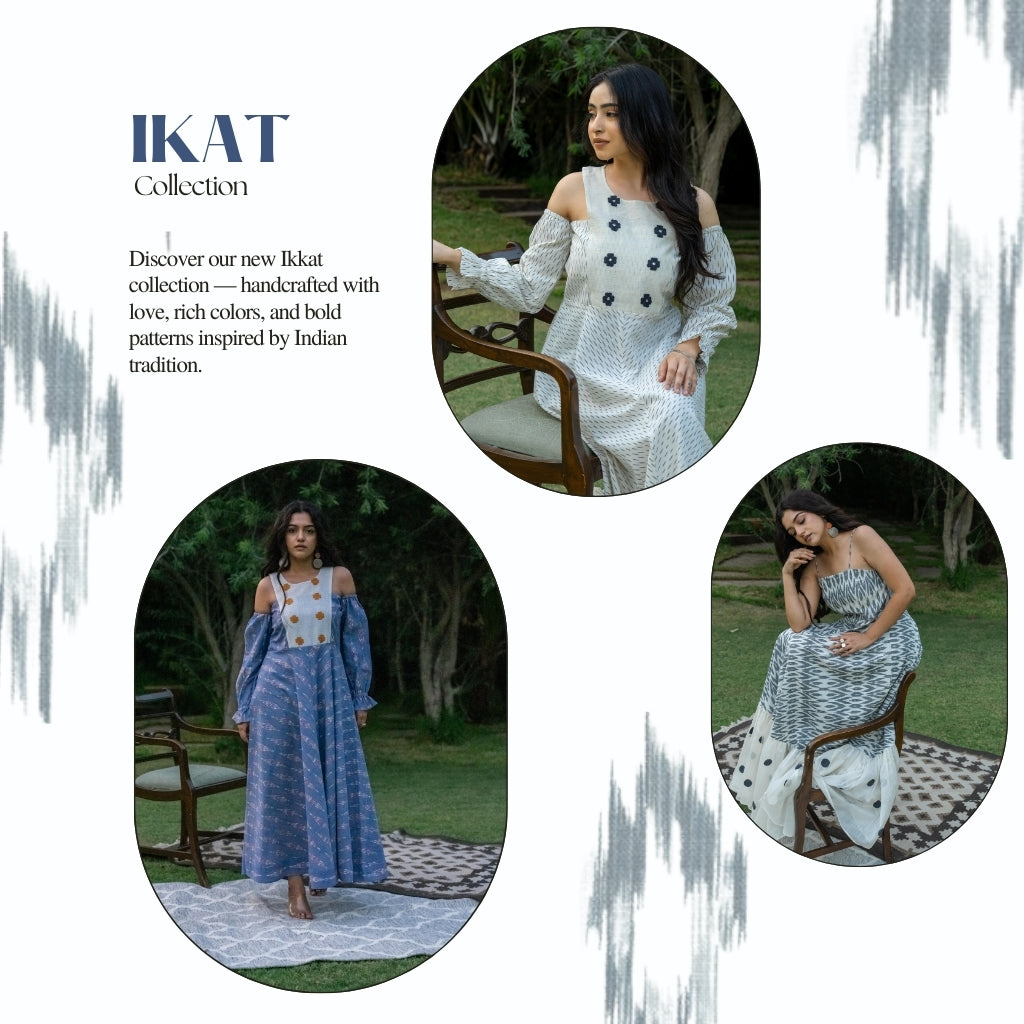 Celebrating the symphony of age-old Ikat weaving technique with our fresh new collection! Every silhouette speaks the tale of chic & contemporary designs. Embrace the unique styles of all the modern dresses this summer. Handmade with love and compassion by our artisans!