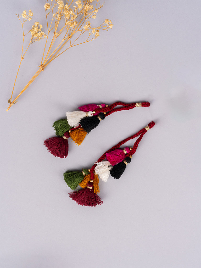 • Evergreen Orange-Red Bandhani Stole With Handmade Tassels