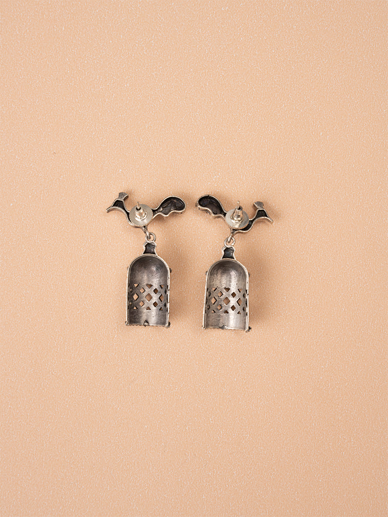 Witness the silver bird jharika earring made from classic German silver in silver colour. It represents the origin of Rajasthan where metal casting craft is used and done by our artisans.
