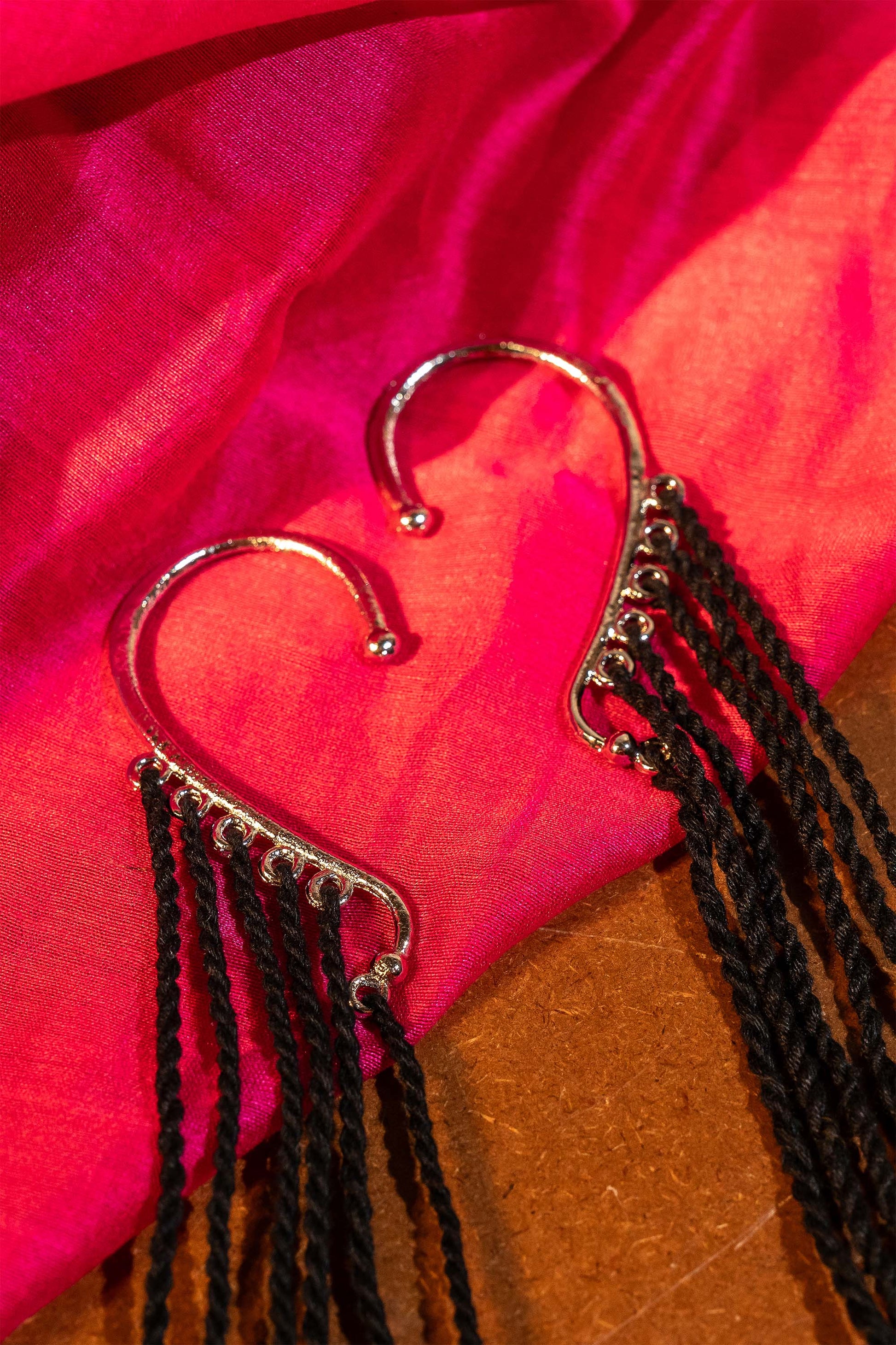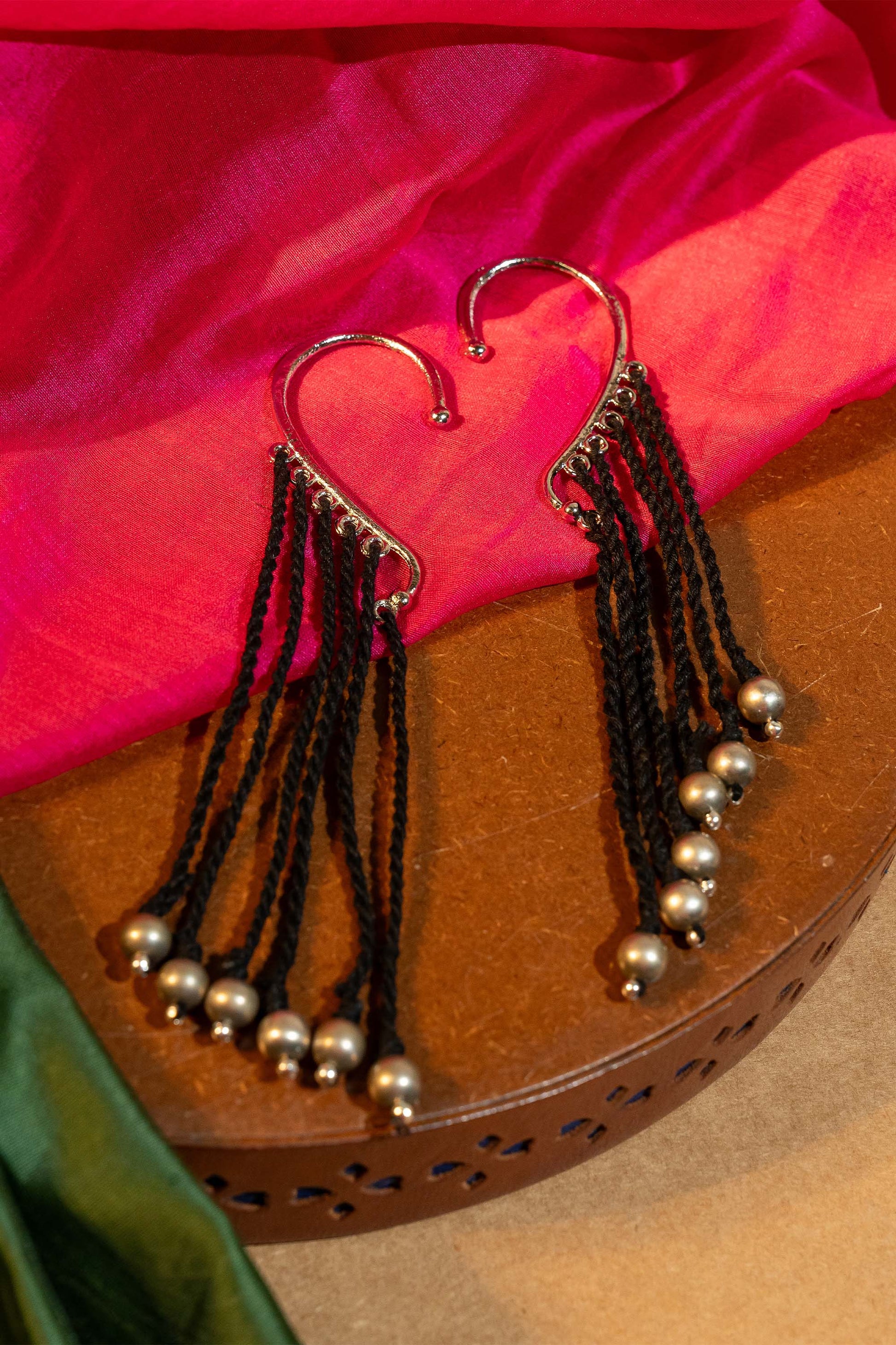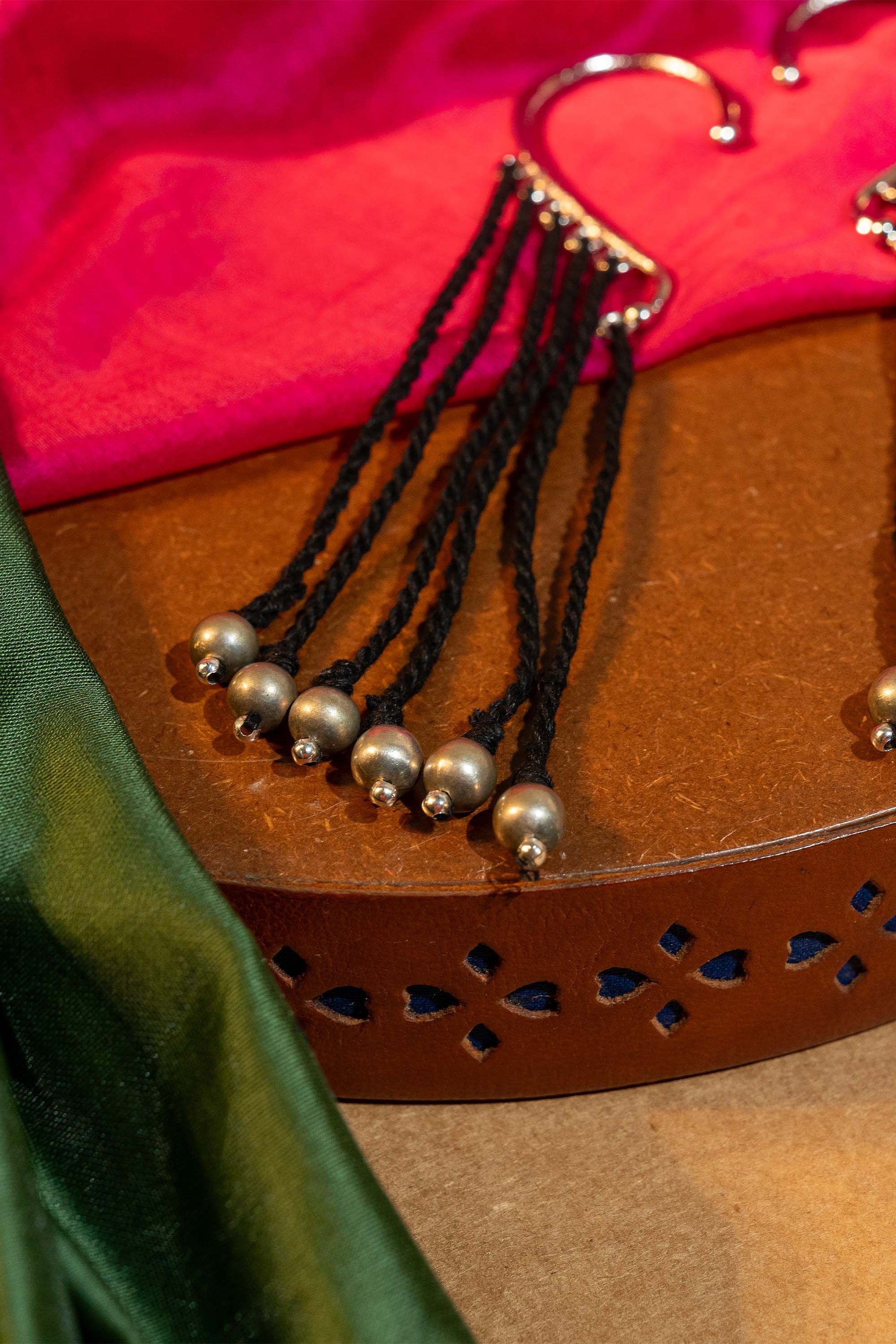 Add a touch of artisanal elegance to your festive look with these stunning black oxidised ball earrings, beautifully finished with soft thread tassels. Handcrafted with care by skilled artisans, each pair showcases intricate metal detailing paired with vibrant thread and sturdy cord work. The bold oxidised finish lends a timeless charm, making it a versatile accessory for both traditional and contemporary outfits. Lightweight yet striking, these earrings are perfect for dancing through Navratri nights in effortless style. Every piece carries the essence of craftsmanship, celebrating India’s rich handmade traditions. Pair them with lehengas, sarees, or fusion wear to make a statement. Part of Craftroots’ exclusive Navratri Collection, this accessory is designed to celebrate culture, craft, and creativity.