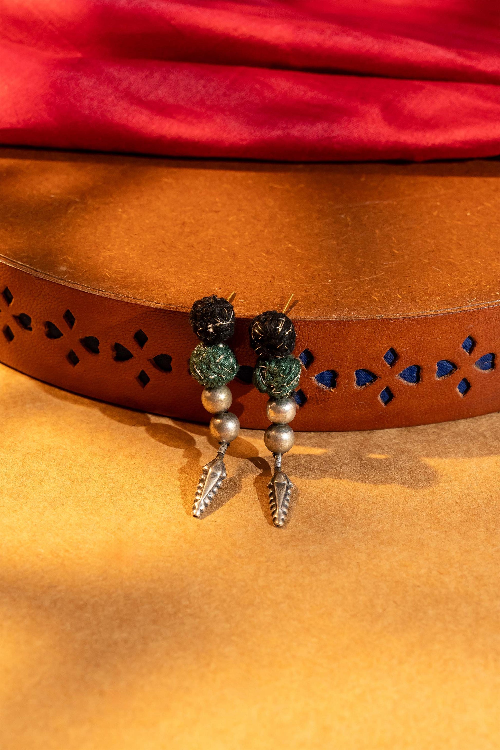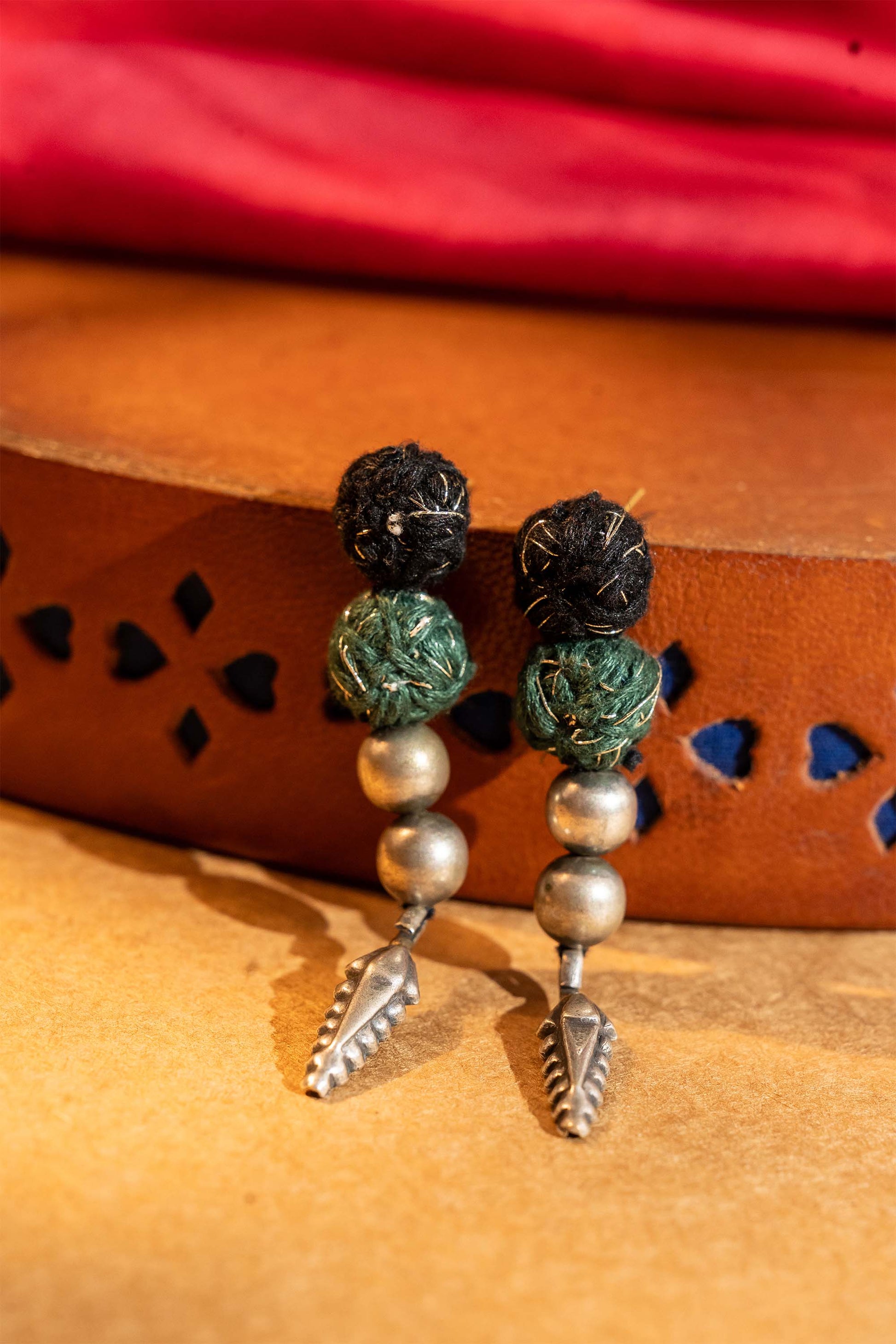 Elevate your festive style with the Black-Green Leaf Drop Earrings from Craftroots’ Navratri collection. Handcrafted with intricate metalwork and delicate hand embroidery, this elegant pair reflects the artistry of skilled Indian artisans. Featuring rich cotton thread accents, vibrant green handmade thread balls, and a graceful leaf-shaped drop, it adds a touch of tradition and sophistication to your festive look. Lightweight and comfortable, these earrings are perfect for garba nights, weddings, and cultural celebrations. Their striking black and green combination makes them a versatile accessory to complement both ethnic and fusion outfits. Celebrate Navratri with jewelry that embodies heritage, craftsmanship, and timeless style.