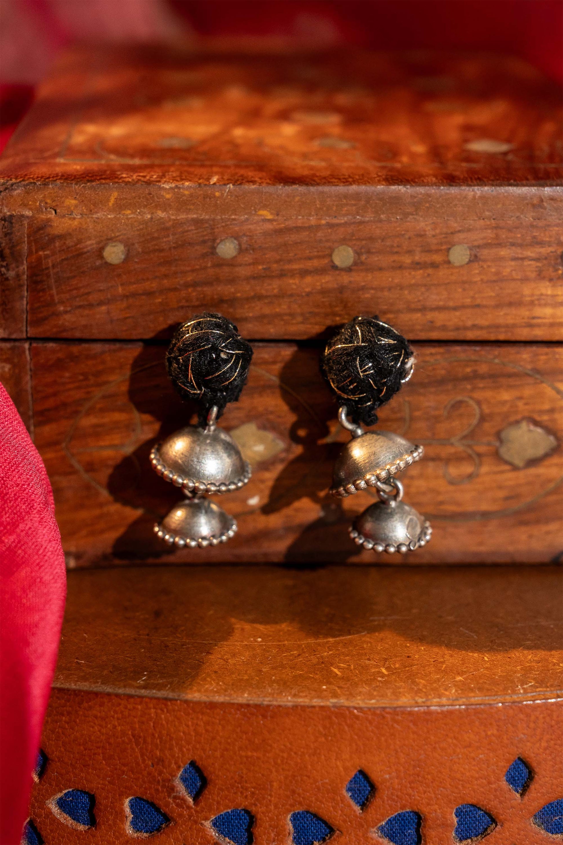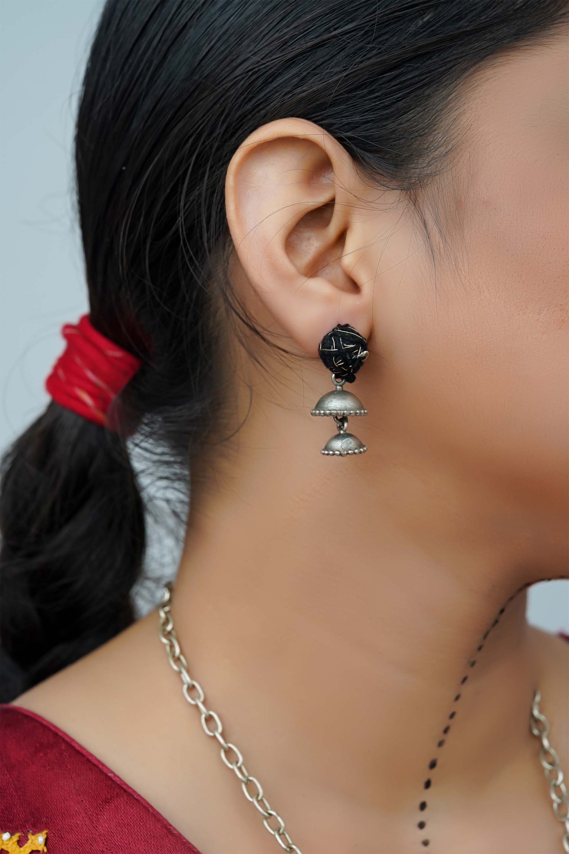 Celebrate tradition with a modern twist with these Black Tassel Oxidised Leaf Earrings and Black Thread Ball Jhumkhas from Craftroots’ Navratri collection. Handcrafted with intricate metal detailing and delicate hand embroidery, these earrings highlight the artistry of skilled artisans. Designed with rich cotton thread tassels and handmade black thread balls, they bring movement, elegance, and a bold festive touch to your look. The oxidised metal elements add a timeless charm, making them versatile for both ethnic and contemporary outfits. Lightweight and comfortable, these earrings are perfect for garba nights, weddings, and festive occasions. Celebrate Navratri in style with jewelry that carries the essence of tradition and the beauty of handmade craftsmanship.