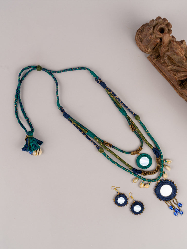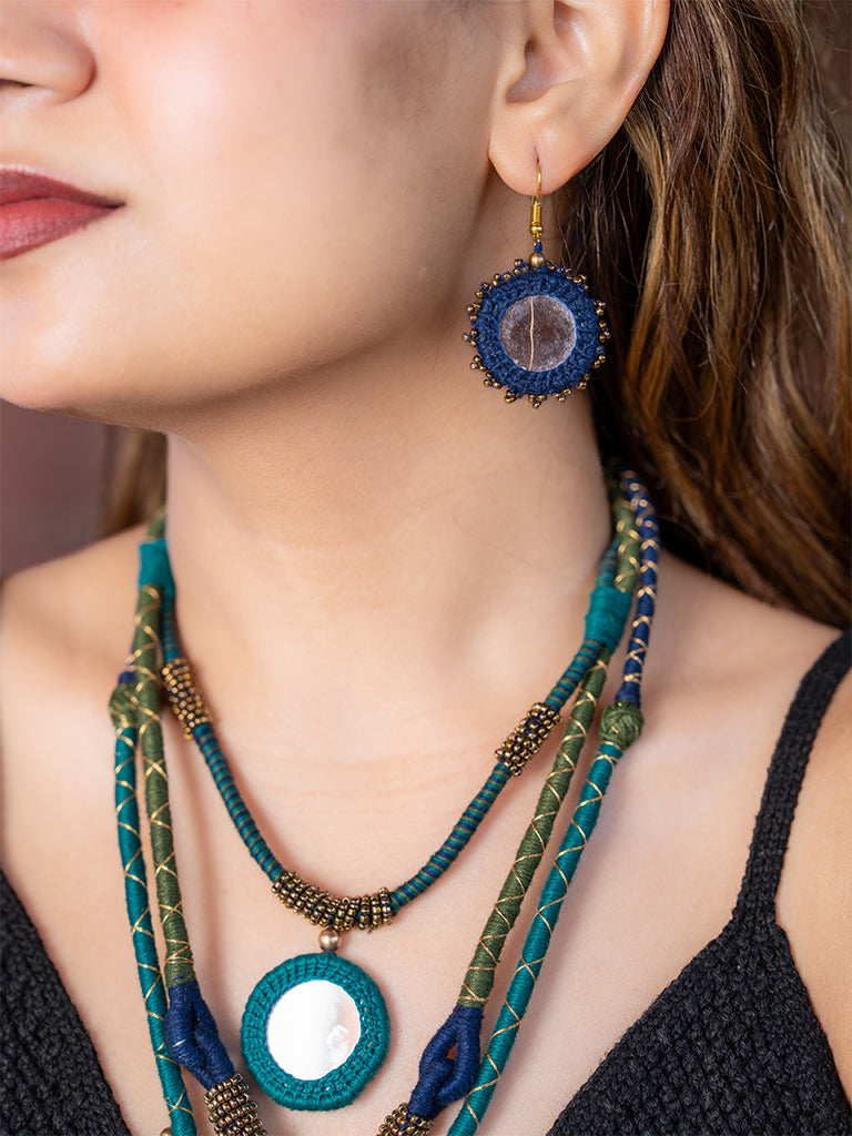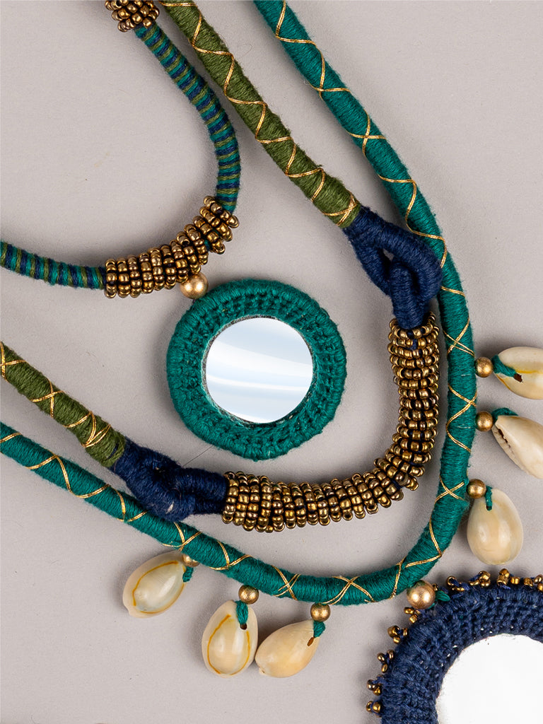 The blue layered necklace set is an ode to craftsmanship. Presenting the beautiful blue neckpiece handmade with supreme quality cotton threads and beads. Embrace the layered neckpiece crafted with a contemporary mix of shells to elevate the look. It is an alluring symphony of handwork done by our skilled artisans. A perfect piece to add