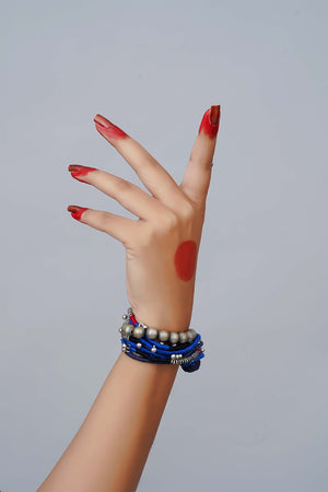 Elevate your accessory game with our Blue Multilayered Bracelet, a stunning blend of tradition and contemporary style. Handcrafted with intricate metal work, fine thread detailing, and a durable cord base, it brings depth and texture to your look. The vibrant blue tones add a bold, stylish touch, making it perfect for both festive occasions and everyday wear. Lightweight and comfortable, this bracelet reflects the artistry of skilled handwork while offering a versatile statement piece for any outfit.