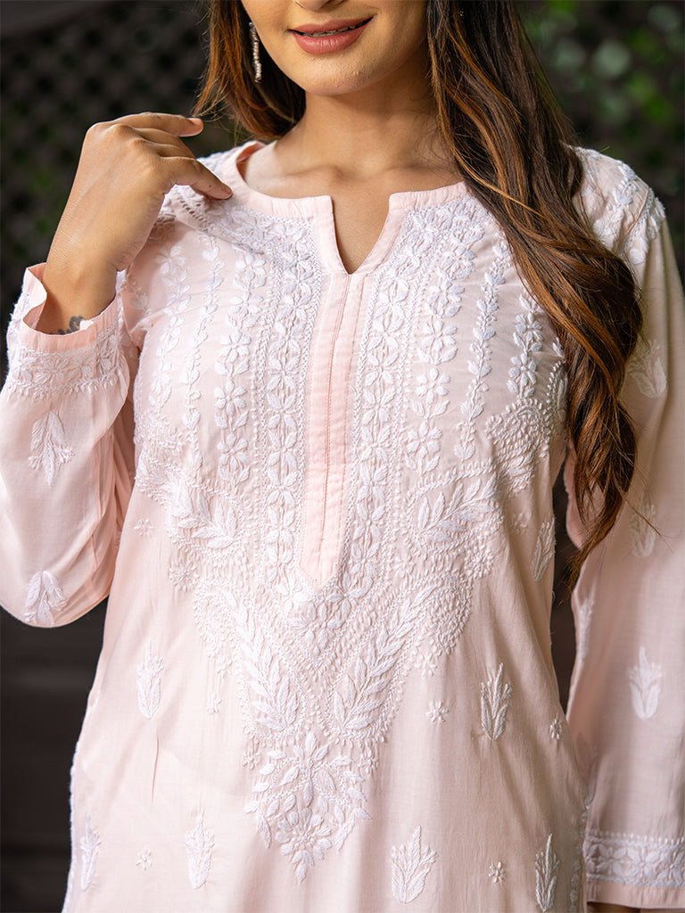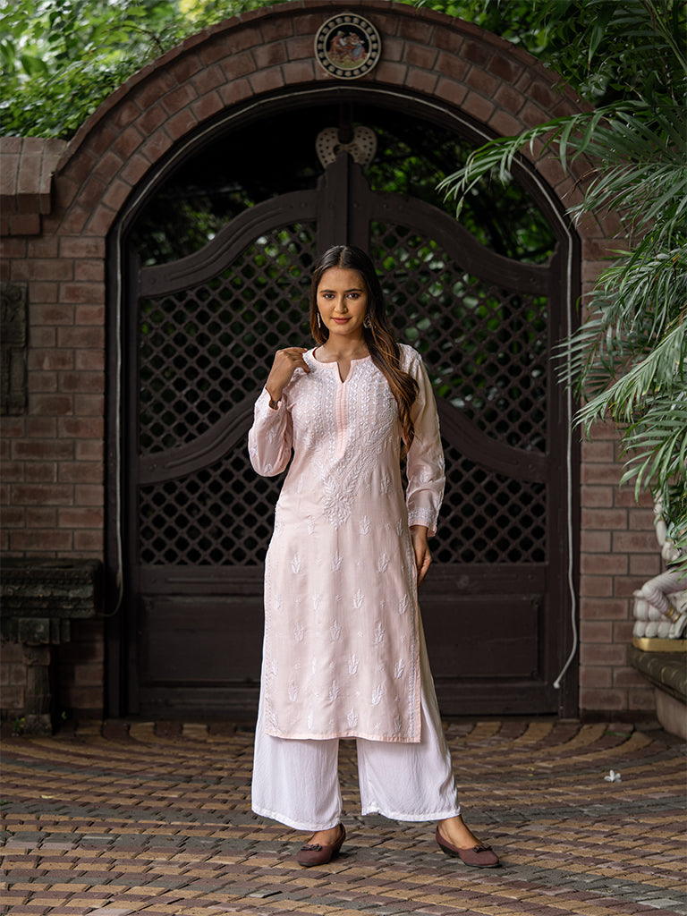 The Chikankari yoke long kurta is a must-have piece for your wardrobe made out of the finest modal fabric.