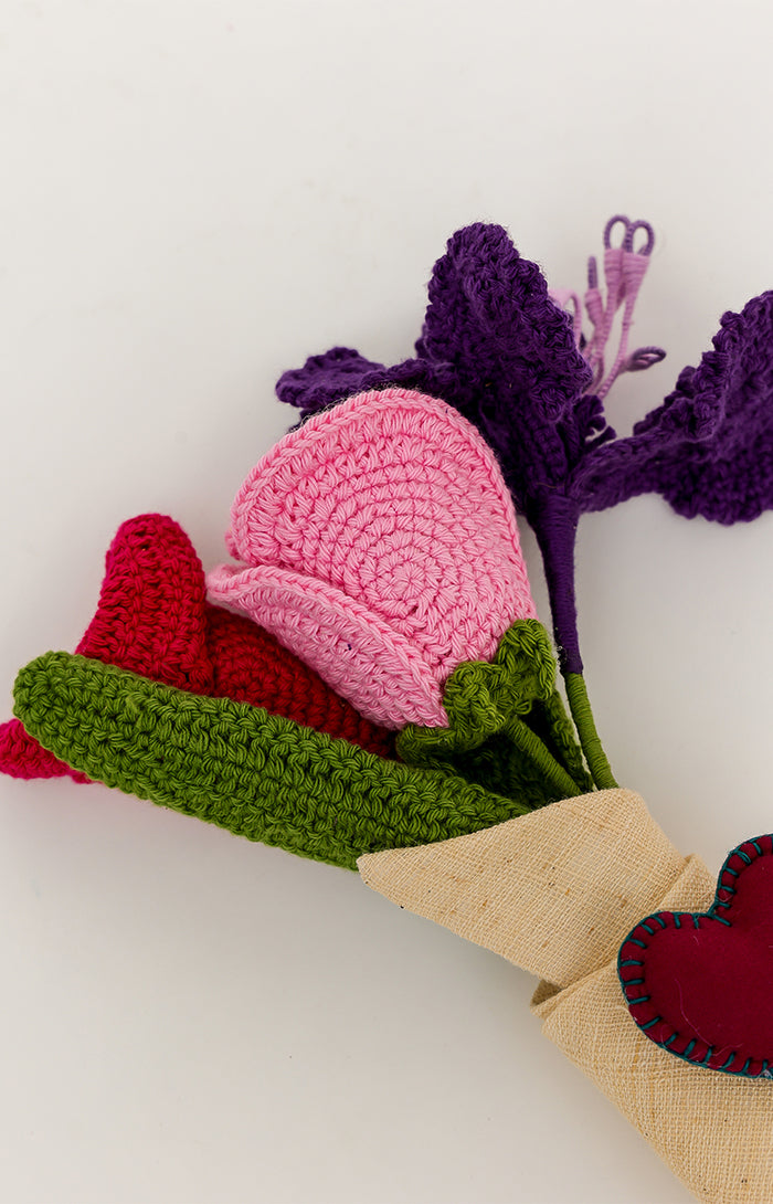 Pink and purple hues come together in our Forever Bloom Series crochet bouquet, a graceful keepsake that never fades.