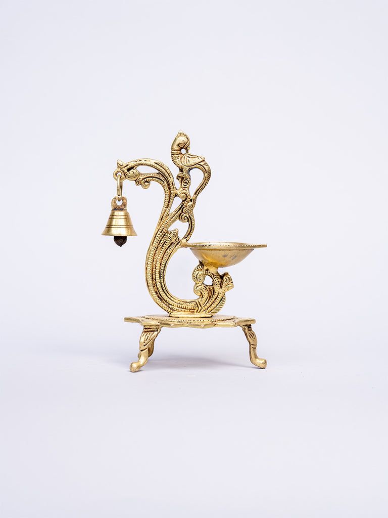 The stunning Deepak with bell design diya has a unique blend of holy festive feels. It is golden in colour and made out of the highest quality metal.
