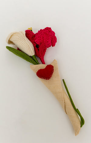 A graceful pink and white crochet bouquet that stays beautiful forever.