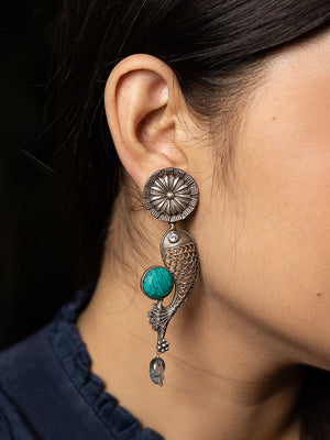 An alluring silver fish stone oxidised earring is a testament to the classic essence of Jaipur, Rajasthan. The earring is made from supreme German silver and metal casting is done with attention to detail by our artisans.