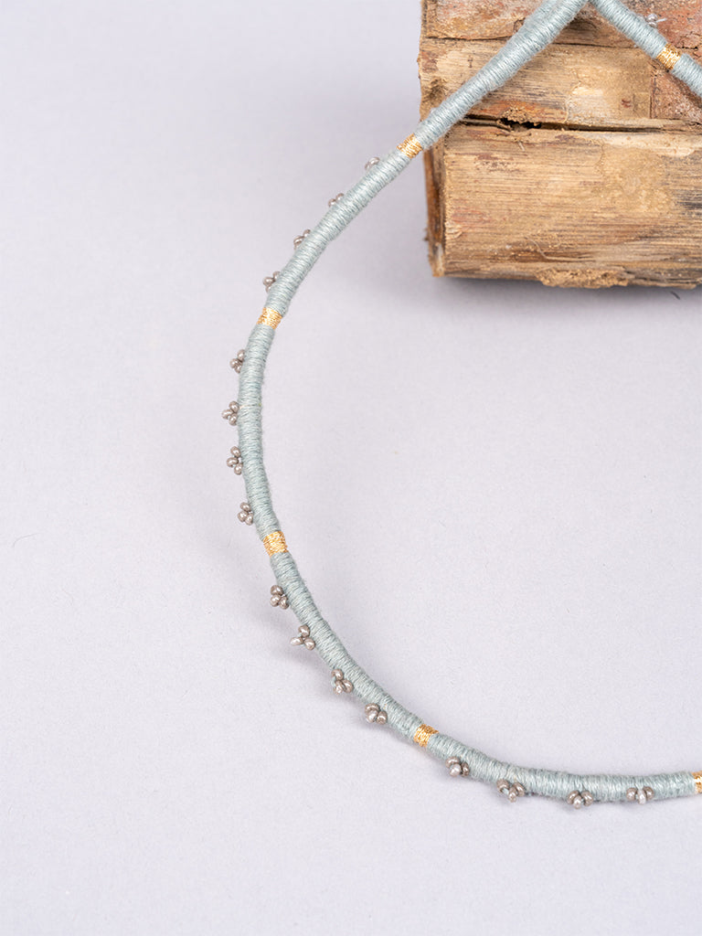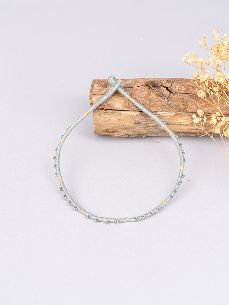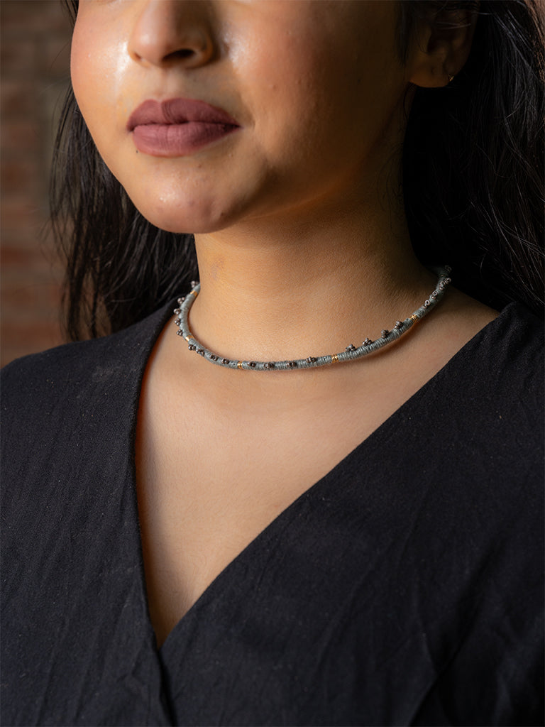 Explore an amazing piece of choker handcrafted precisely by our skilled artisans. It's a perfect necklace to gift your favourites. Witness the magnificence of hand-embroidered beads to style. This is a spectacular free-size beautiful grey choker for all your festive ensemble edits.