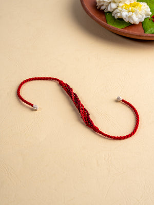 Celebrate Rakshabandhan with our artisanal red Rakhi crafted with hand-twisted strings in rich shades of red. This Suttar Rakhi features intricate threadwork delicate beads and a soulful artisanal touch. Every detail reflects the essence of sibling love wrapped in tradition and emotion. The handcrafted design brings together heritage and heartfelt connection. Made with care by skilled artisans each Rakhi is a meaningful expression of affection protection and timeless craftsmanship.