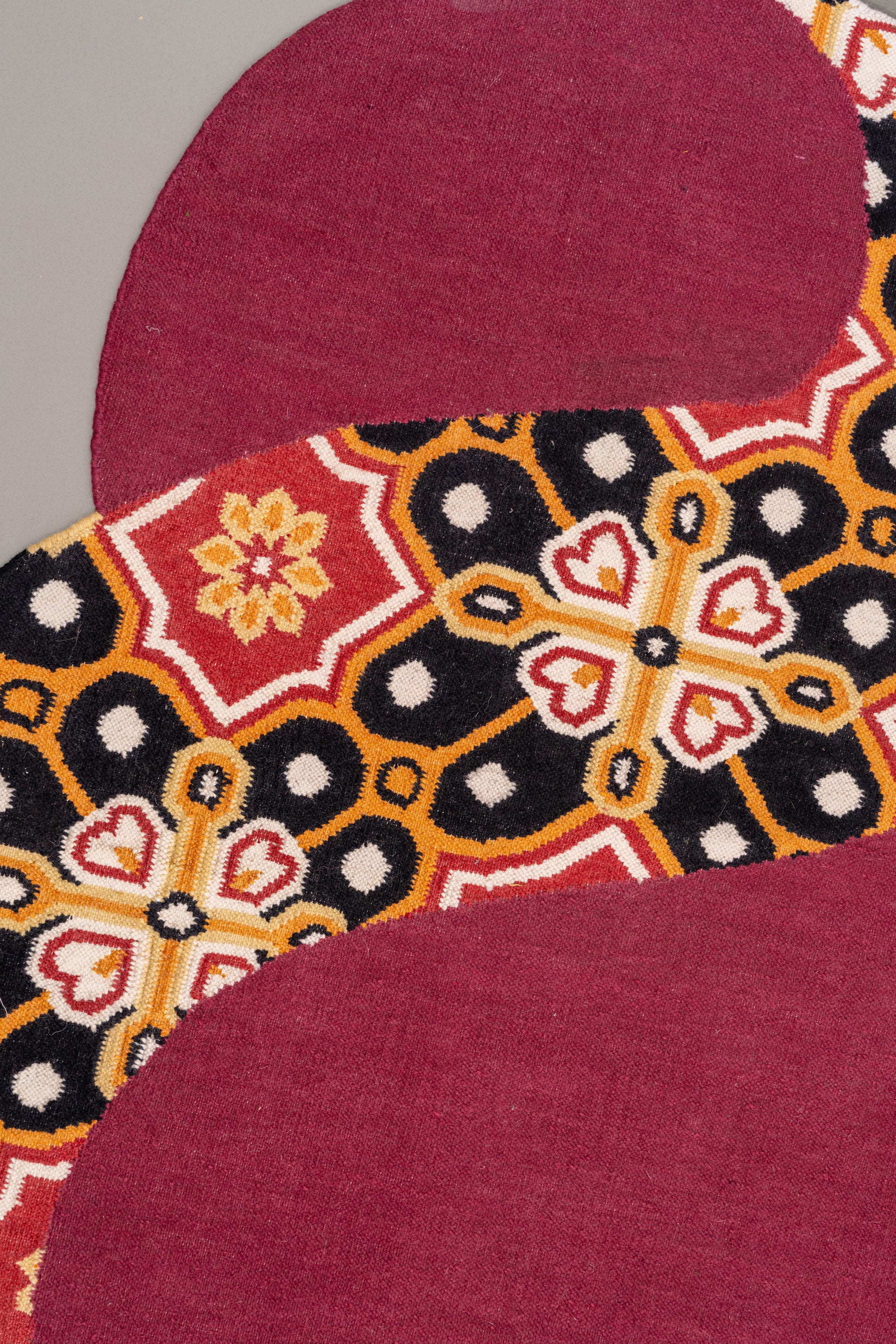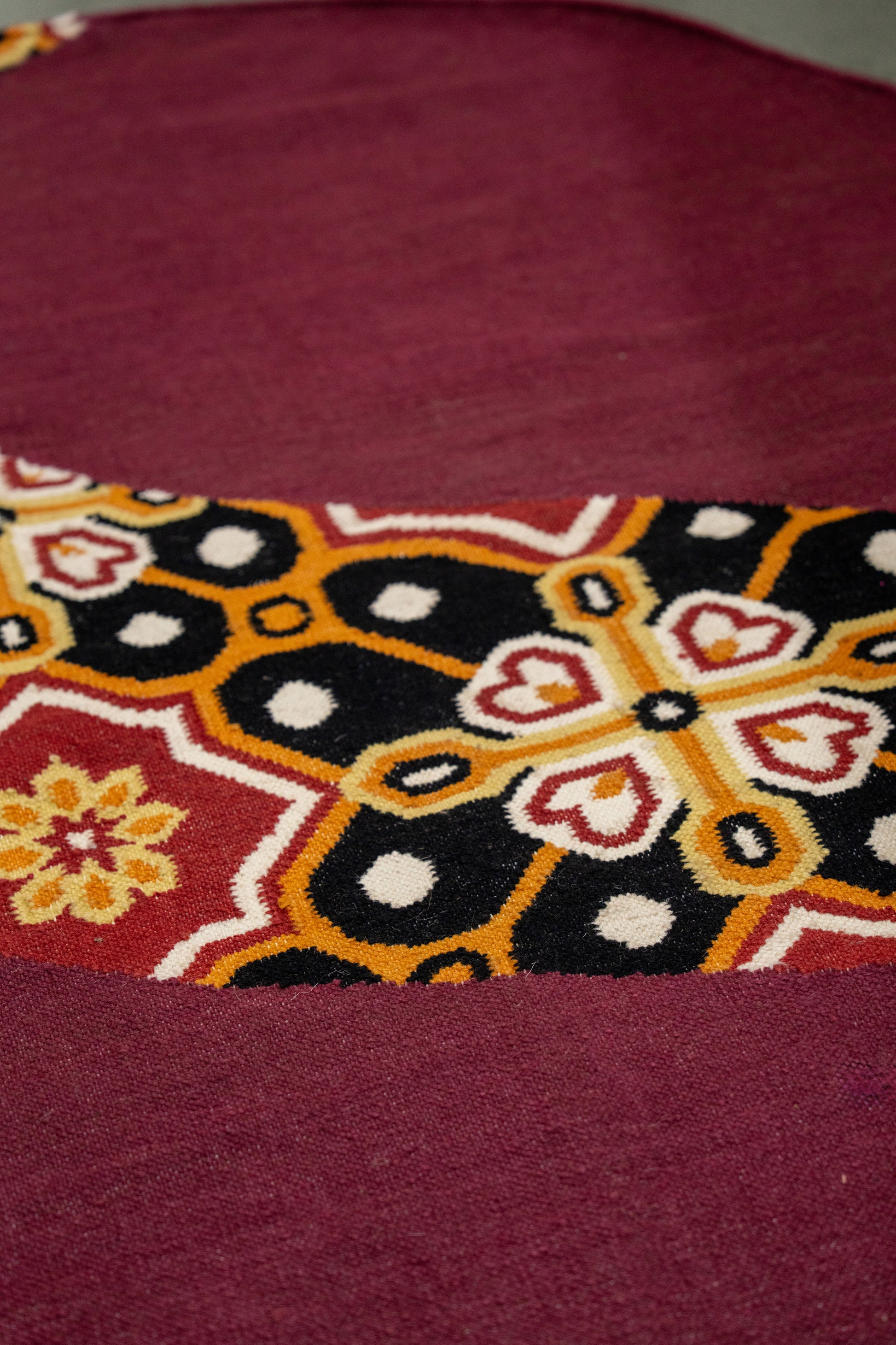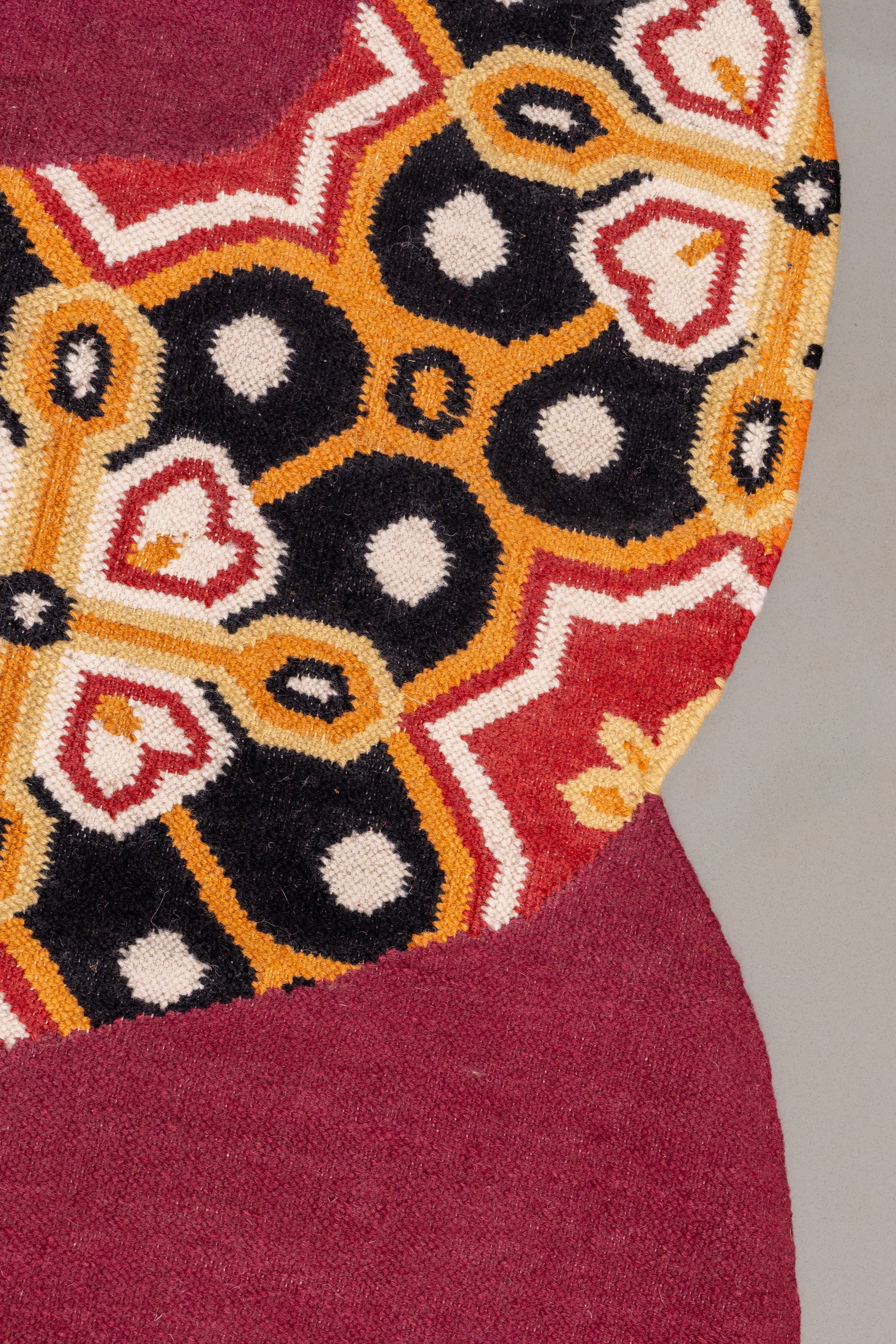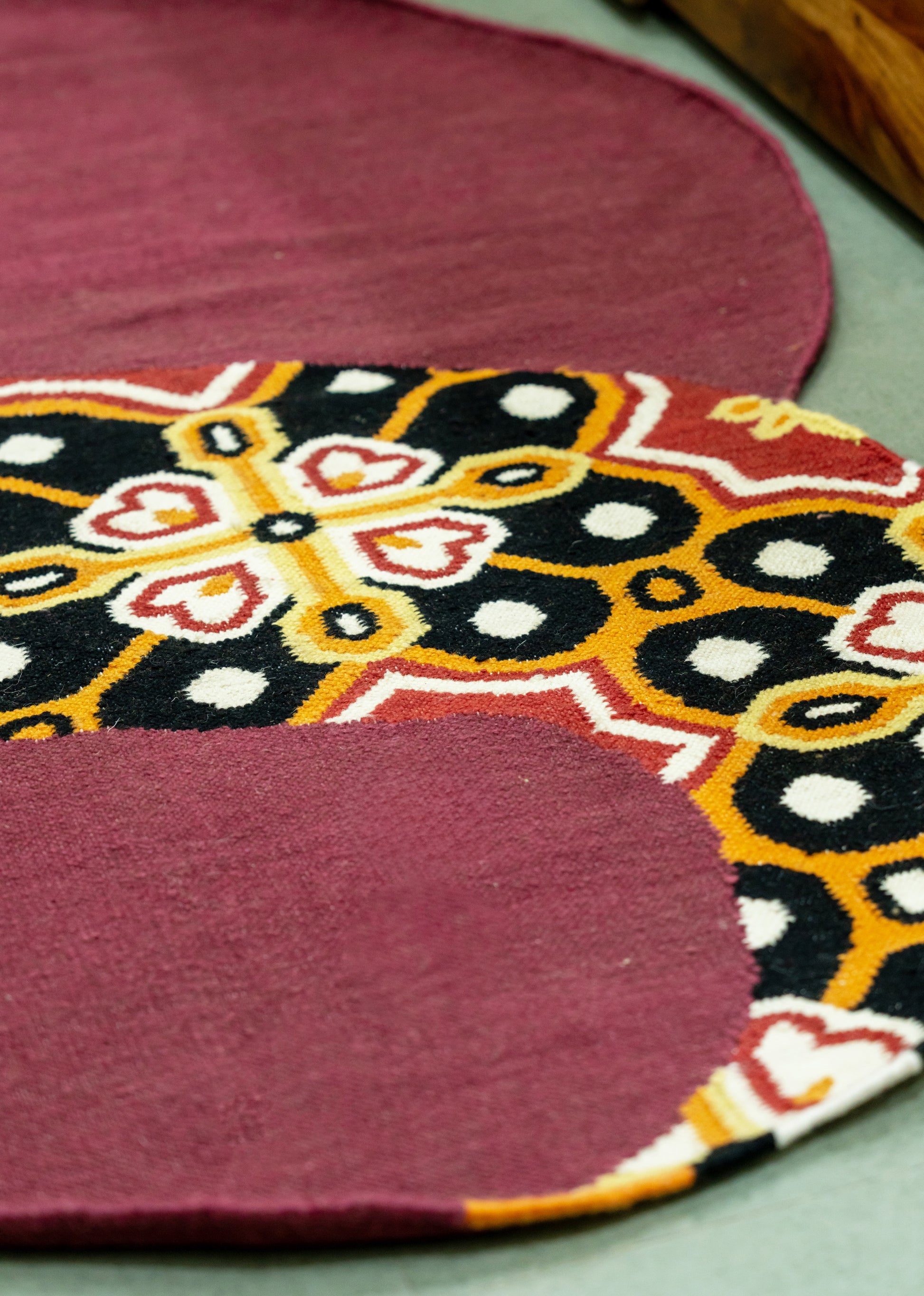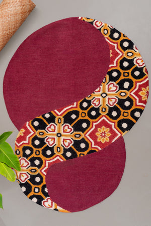 The Indie Spiral from the Shamiyana Collection celebrates the vibrancy of Indian artistry and cultural heritage through its captivating design and craftsmanship. Handwoven with a rich blend of 80% premium wool and 20% fine cotton, this rug offers a luxurious texture and enduring quality. The deep maroon and orange hues create a warm, expressive palette that adds character and charm to any space.
