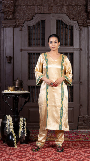 Ivory Mashru Kurta Set with Earth-toned Rabari Embroidery
