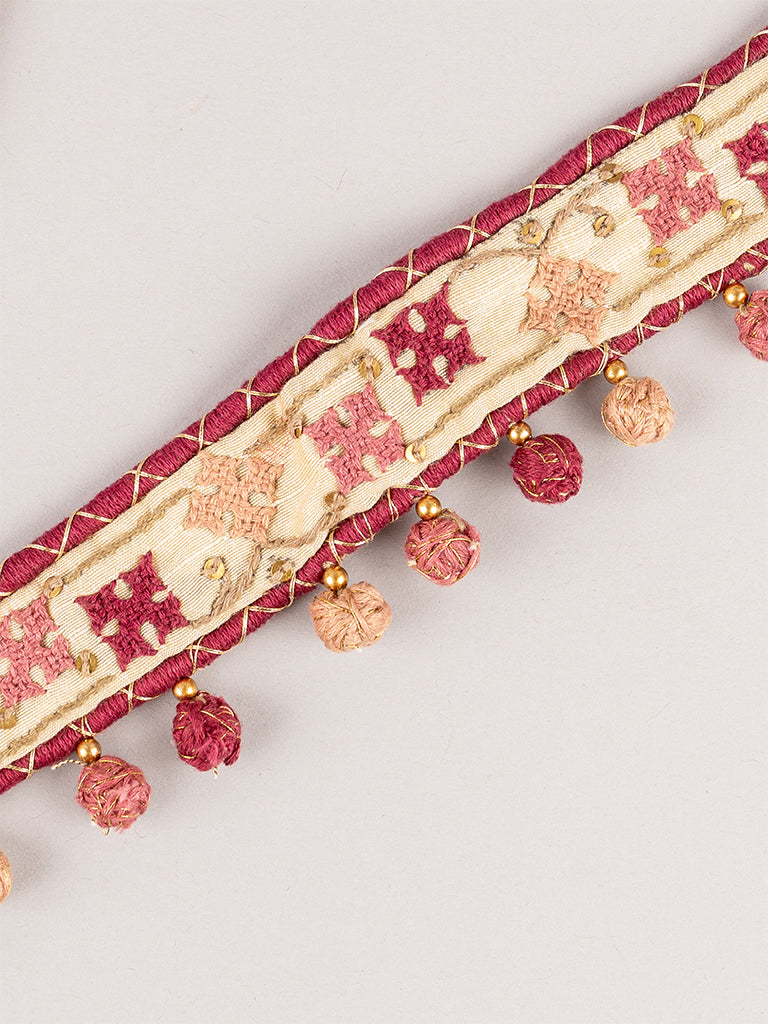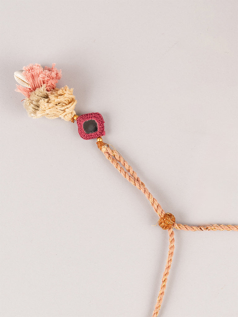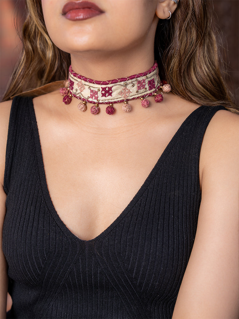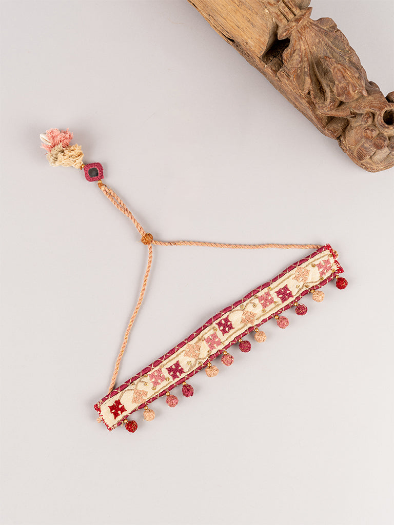 Appreciate the timeless charm of the ivory thread ball Rabari choker, meticulously crafted with exceptional artisanal techniques. This choker, hand-embroidered with thread balls, aims to showcase the deep-rooted culture of the Rabari community from Gujarat. The ivory piece features mirrors, beads, and cotton threads to elevate its appearance. Immerse yourself in the enduring elegance of the handmade Rabari choker created by our artisans. Each motif represents the age-old artistry and skill involved in the craft. Let’s celebrate it and pair it with our favourite outfits