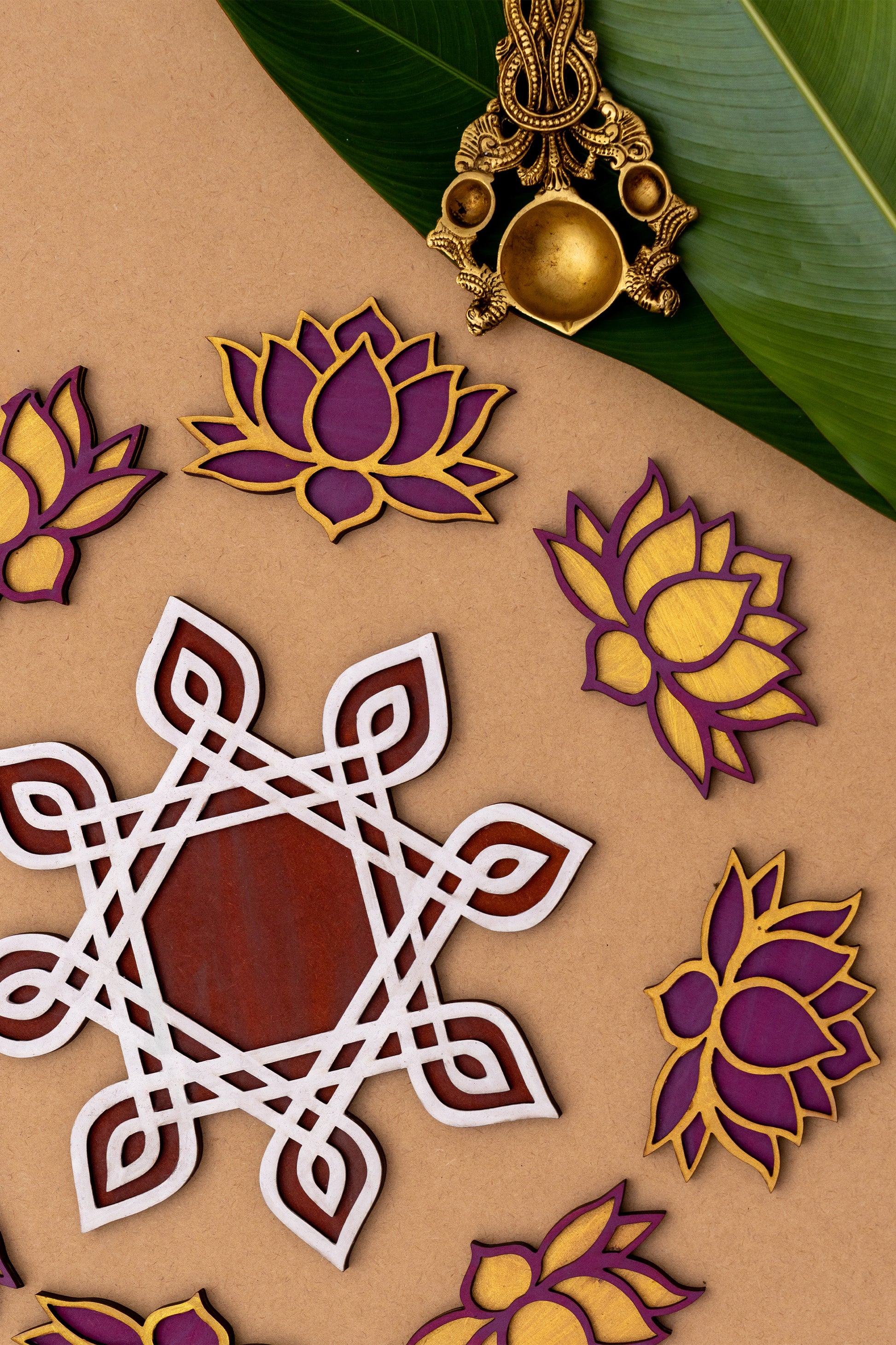 An eco-friendly and reusable choice, this rangoli beautifully complements festive spaces during Diwali, Navratri, weddings, and other auspicious occasions. Easy to care for, it simply requires gentle dusting with a dry cloth and should be kept away from water to maintain its brilliance.