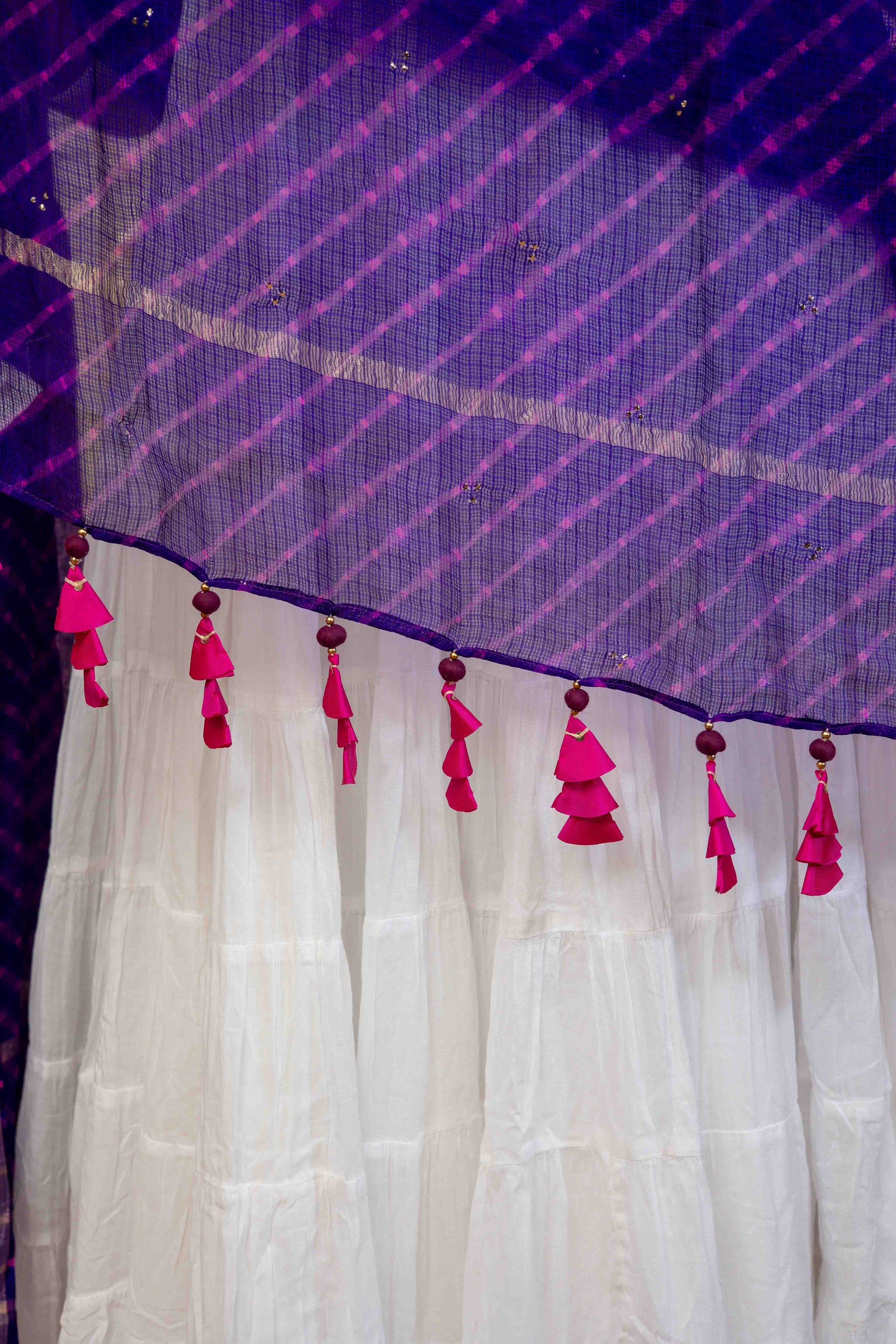 Kota Doria Dupatta with Tassels: Bright Blue with a Touch of Pink