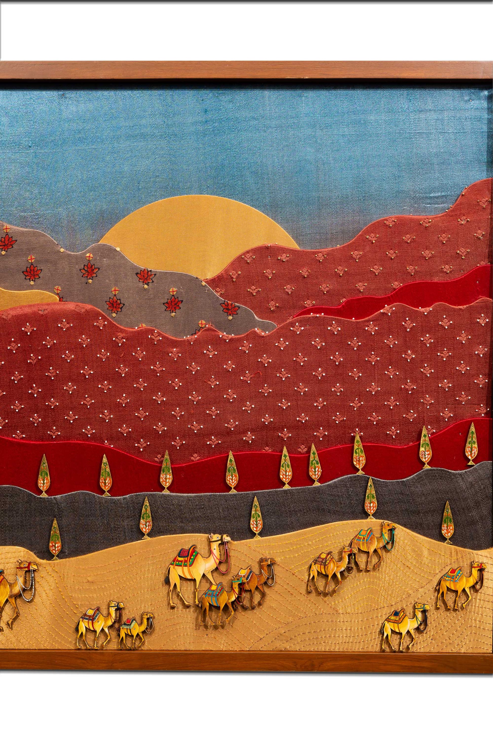 Steeped in heritage and devotion, Onktkhar is an exquisite hand-painted wall frame that celebrates India’s artistic legacy. Crafted by master artisans from Ahmedabad, it features fine painting and delicate embroidery on a rich textile base, radiating a royal and timeless charm. The harmonious blend of rust and ochre red tones adds warmth and depth, symbolizing strength and divinity. Each detail is meticulously created, showcasing refined craftsmanship and soulful expression. Perfect for elevating any living space, this piece embodies luxury rooted in tradition. Keep away from direct sunlight and clean gently using a blower. Onktkhar — where heritage, art, and devotion unite.