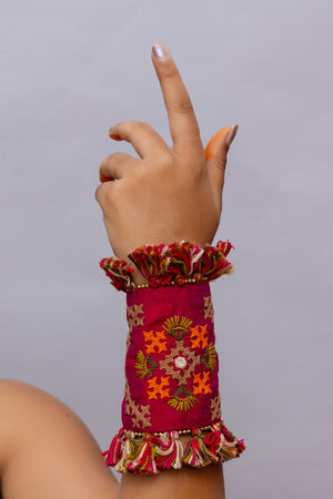 Pink Rabari Motif Handcuff -Handcrafted Textile Cuff