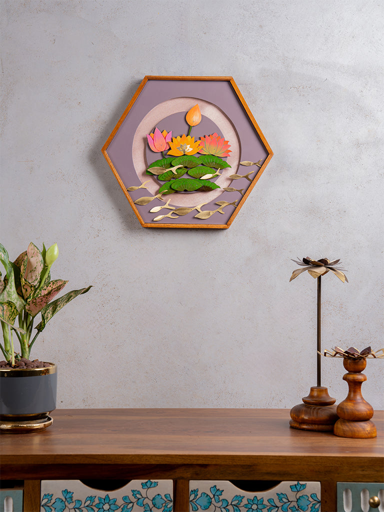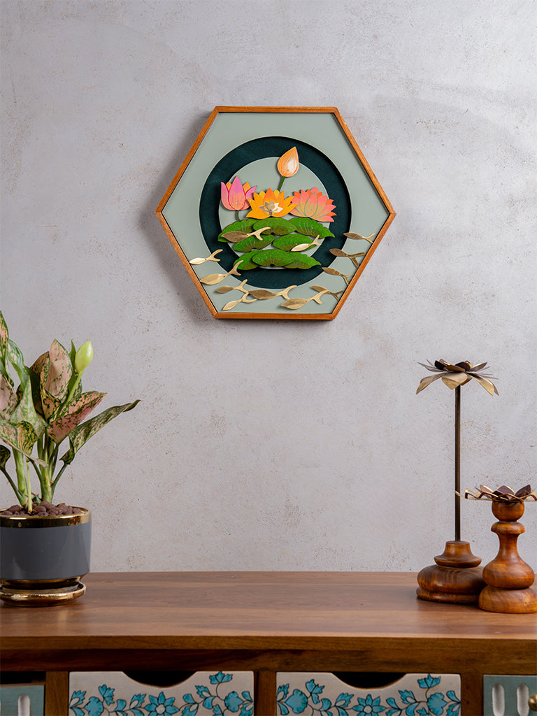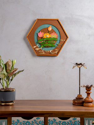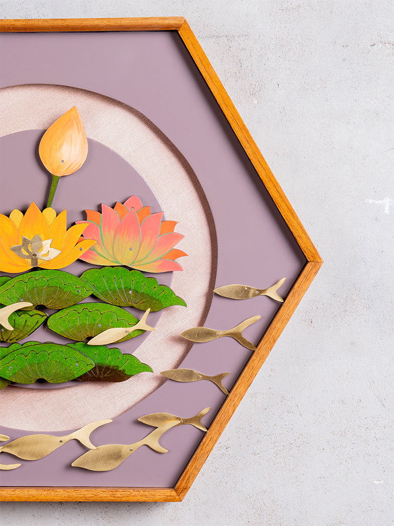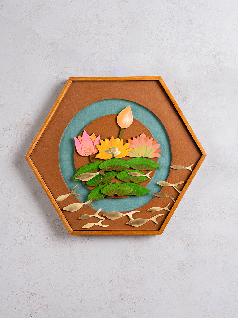 Explore the world of ancient times that is crafted giving a contemporary touch to your living area. True craftsmanship is seen on an alluring wall frame. Cherish the gloriousness of hand-cut metal on exclusive mashru fabric. An exclusive hand-painting brush stroke on nature’s paradise looks magnificent. This frame is gently set on the MDF block with wooden frames on all four sides.