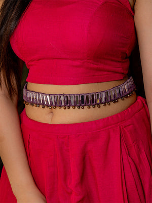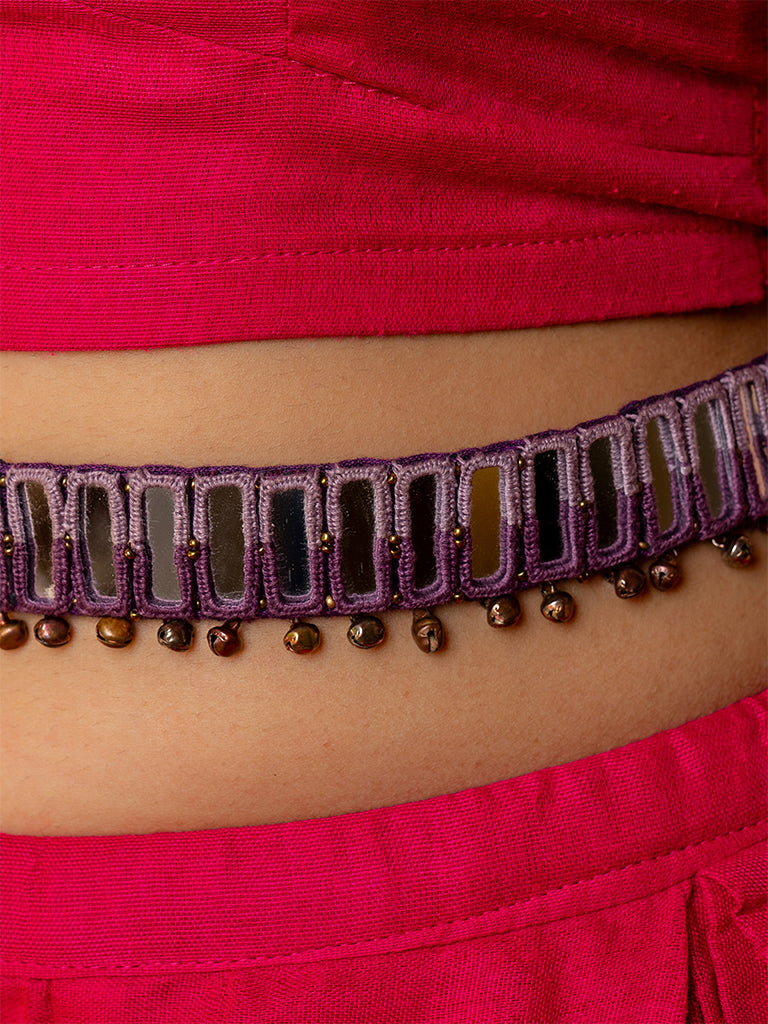 Explore the beauty of our handcrafted purple-shaded waist belt, featuring intricate thread and mirrorwork embroidery. Made by skilled artisans from Gujarat. This rectangular waist belt immensely integrates artistic craftsmanship with elegant design.