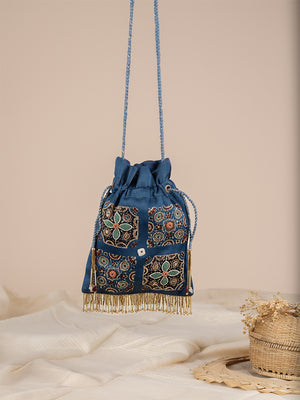 Rectangular With 4 Square Ajrakh & Hand Work Potli