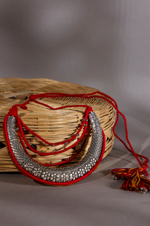 Made using a rich combination of metal, thread, and cord, this necklace offers durability, comfort, and a unique handcrafted appeal. The vibrant red color adds a touch of energy and elegance, making it ideal for pairing with festive wear, ethnic outfits, fusion looks, or even simple everyday ensembles that need a pop of color.