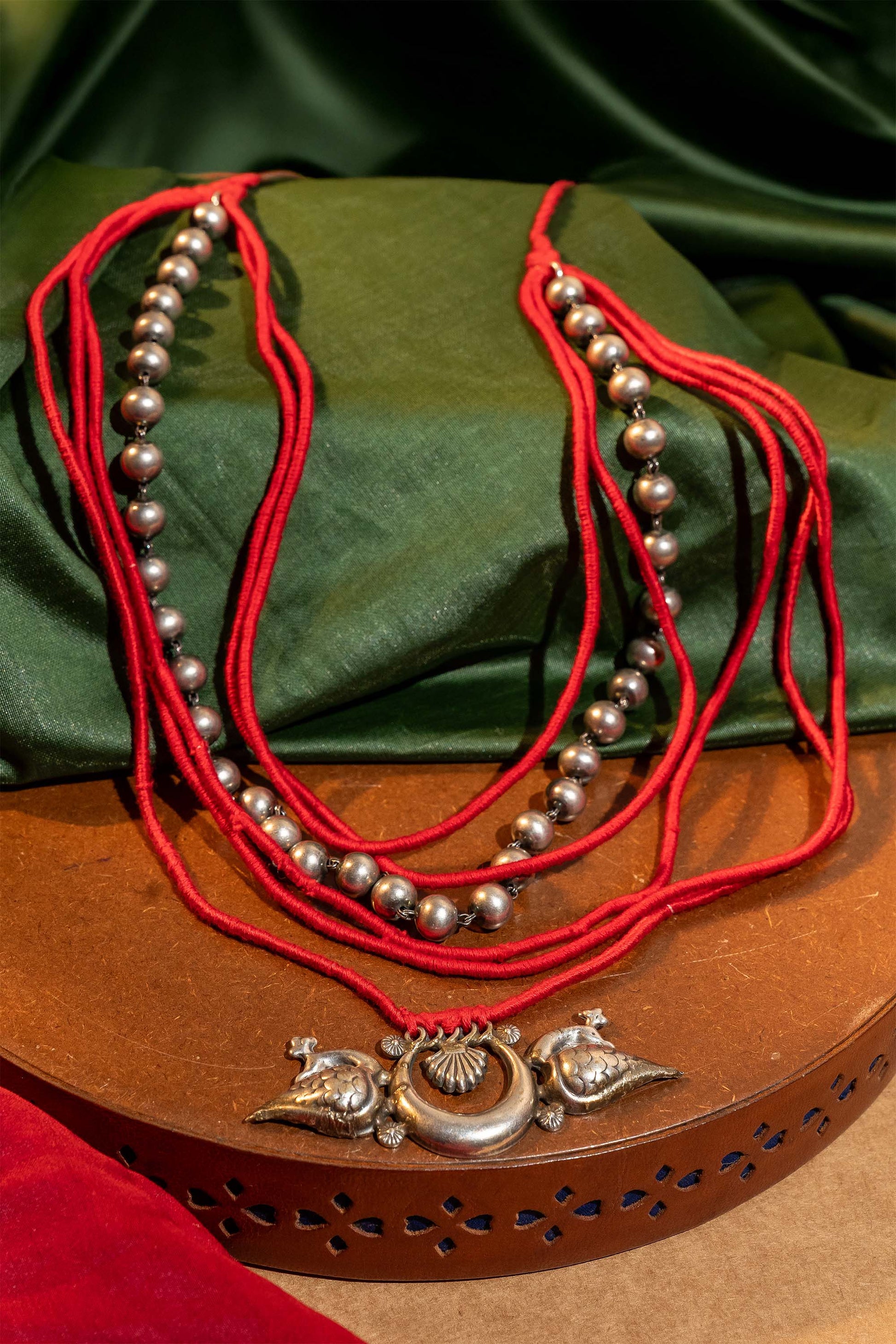Add a touch of elegance to your look with the Red Layered Necklace, beautifully handcrafted by Craftroots artisans. Made with the finest metal, cotton threads, and durable cord, this layered piece reflects timeless craftsmanship and finesse. The vibrant red tones bring festive energy, making it a perfect choice for celebrations or statement styling. Each necklace is crafted with care, blending traditional handwork with contemporary appeal. Pair it with ethnic or modern ensembles to create a striking fashion statement.