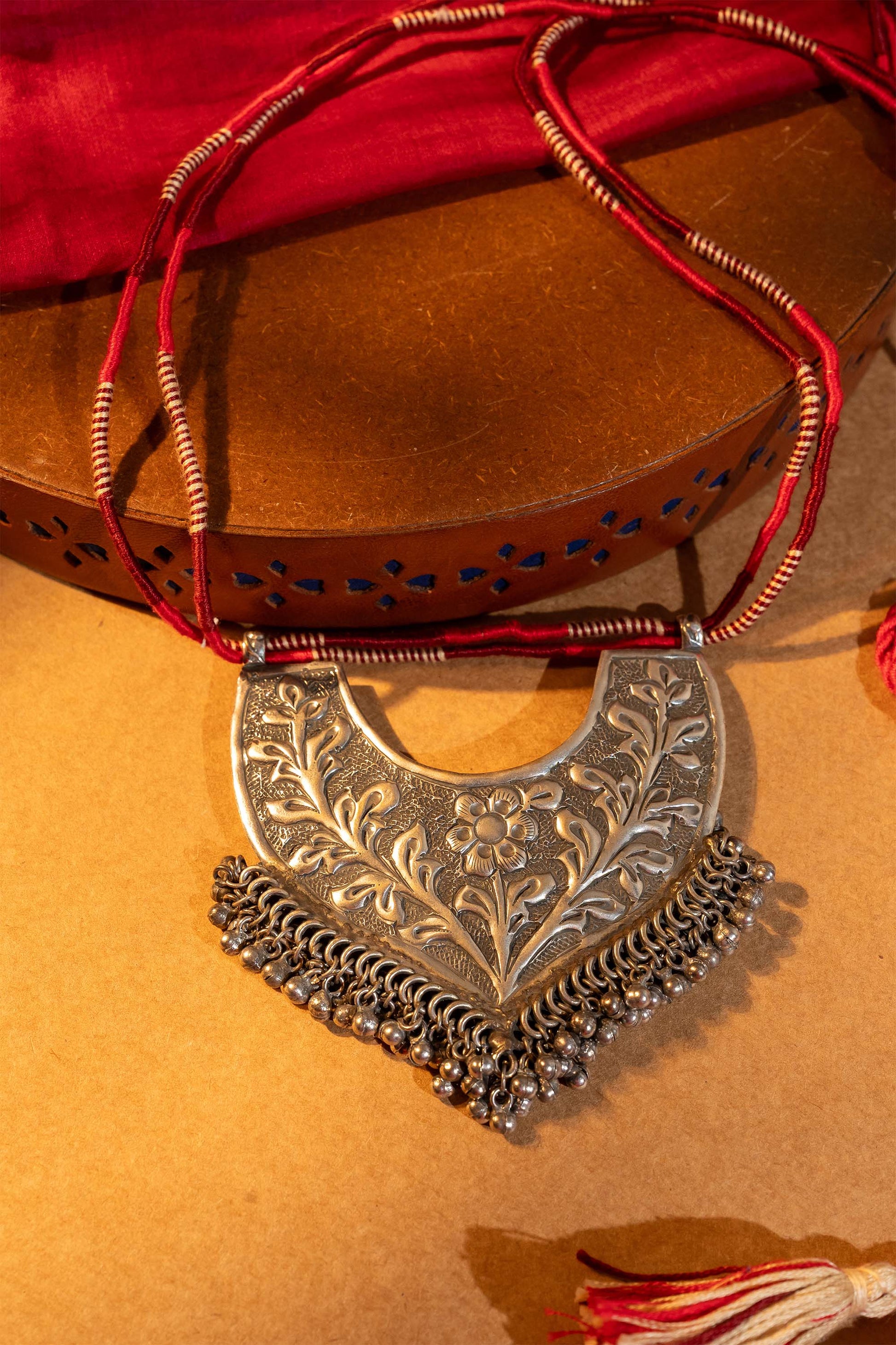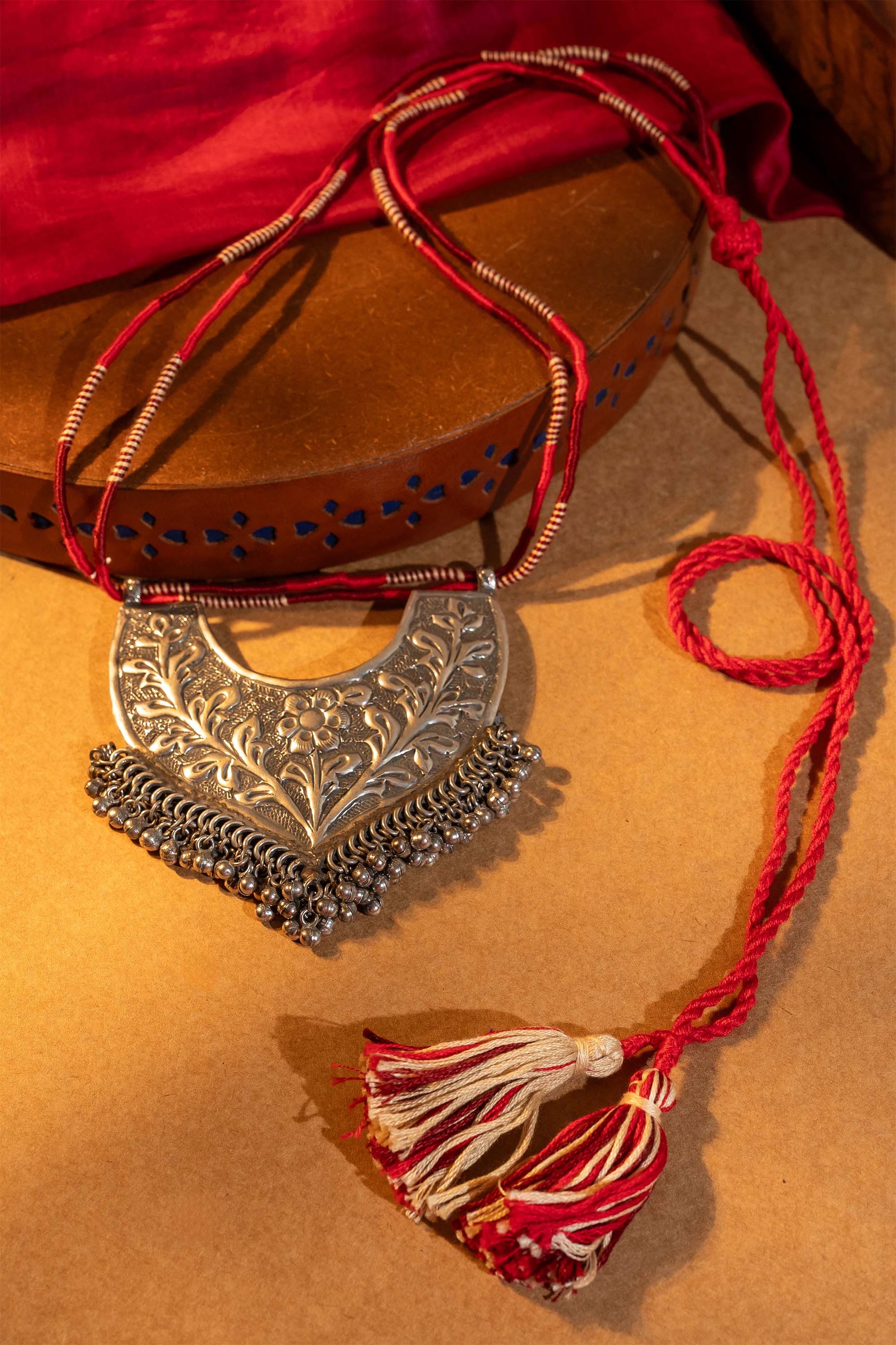 Make a bold statement with the Red Long Oxidised Pendant from Craftroots’ fresh collection. Handcrafted with precision, this pendant combines cotton threads, cords, and oxidised metal to create a striking design. The rich red tones add vibrancy, making it perfect for festive occasions and contemporary styling. Every piece reflects the artistry and craftsmanship of skilled artisans, bringing heritage into modern fashion. Pair it with ethnic or fusion ensembles for a timeless, statement-making look.