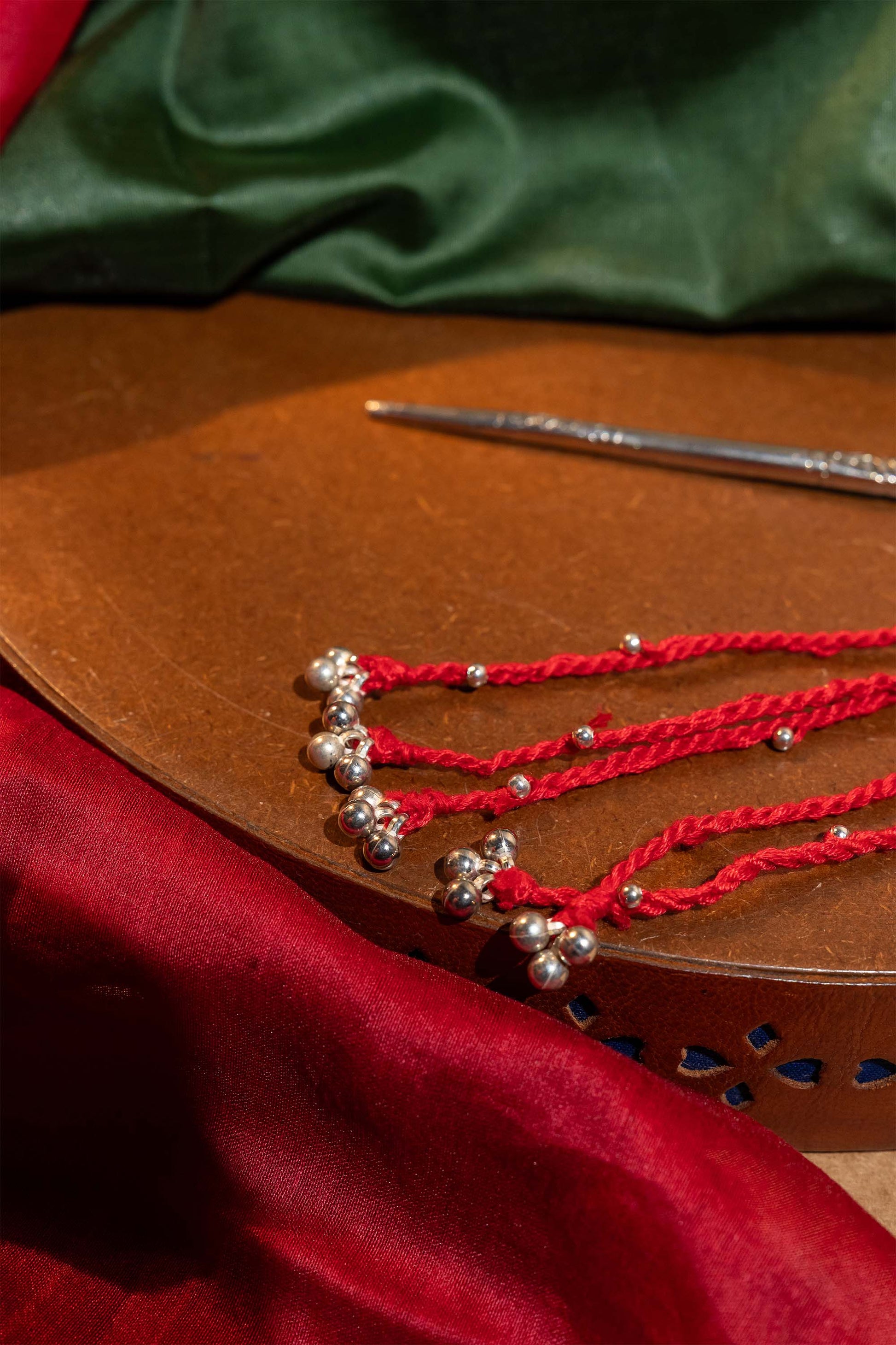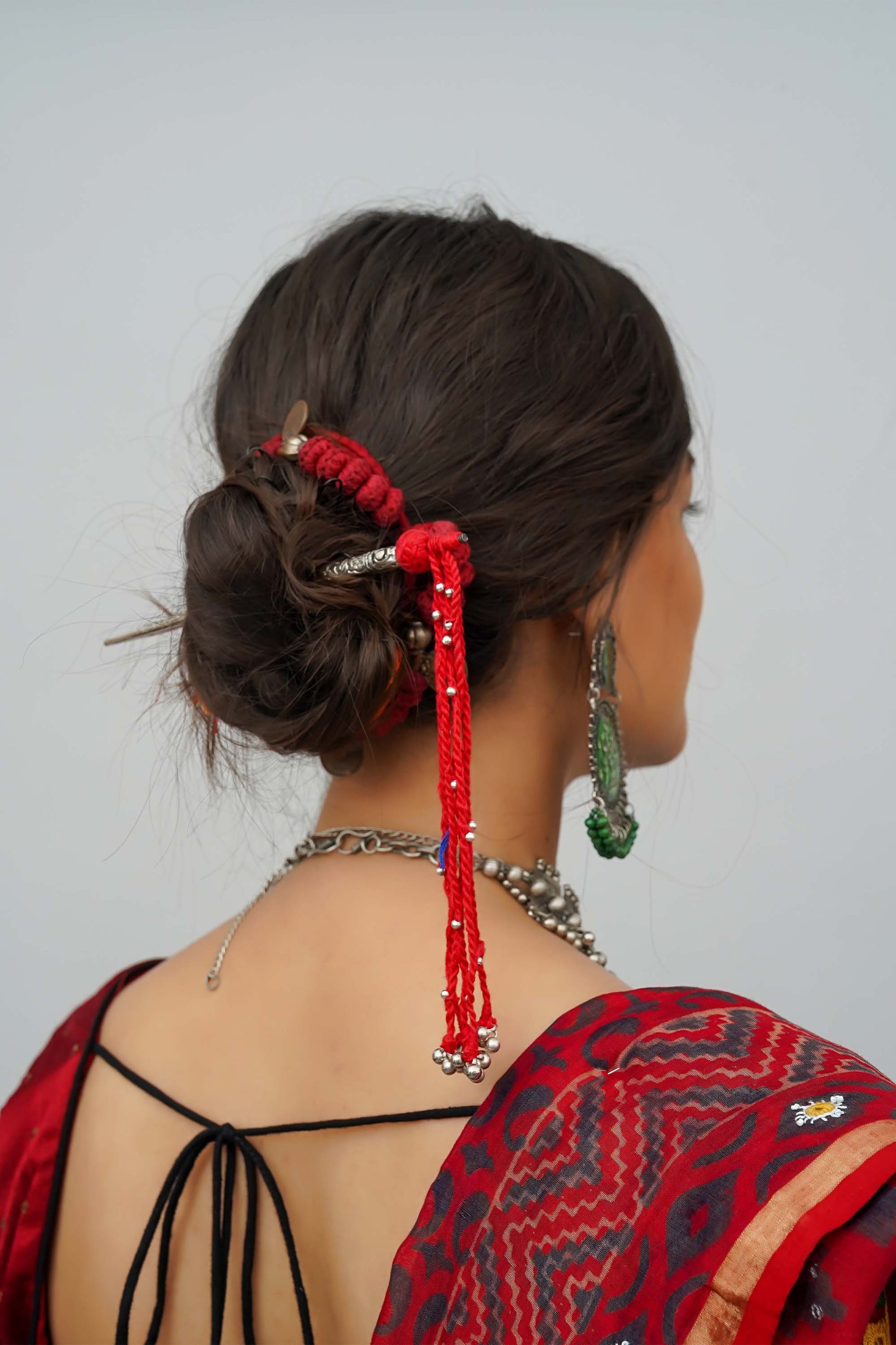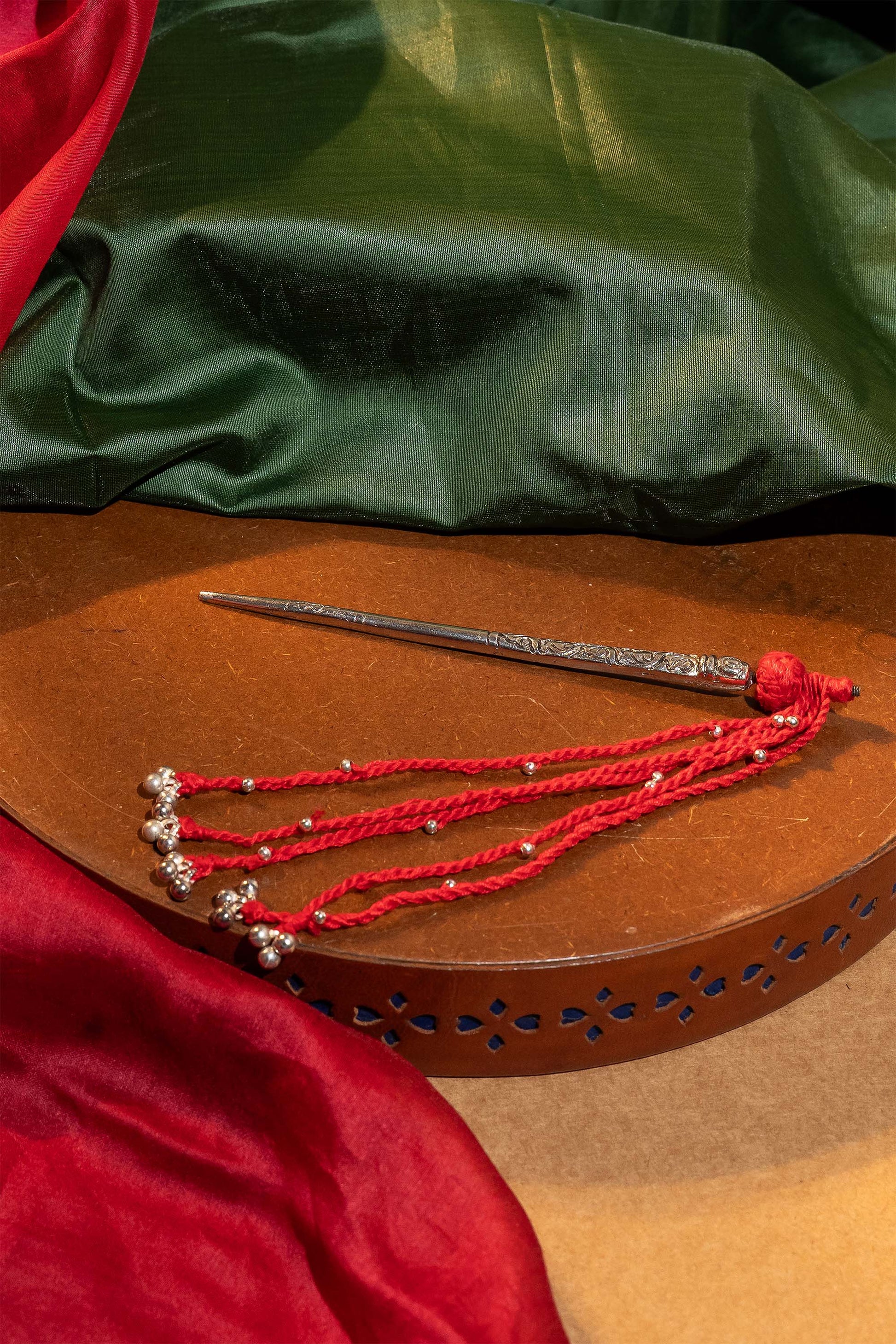 Enhance your festive style with the Red String Hair Stick, a handcrafted accessory that blends tradition and elegance. Designed with vibrant red threads, sturdy cord, and intricate metalwork, it features delicate metal balls embedded for a unique, eye-catching look. Handmade with love by skilled artisans, this piece reflects Craftroots’ commitment to preserving heritage craftsmanship. Perfect for upcoming festivities or everyday styling, it adds charm and sophistication to any hairstyle. A versatile accessory made to celebrate artistry and individuality.