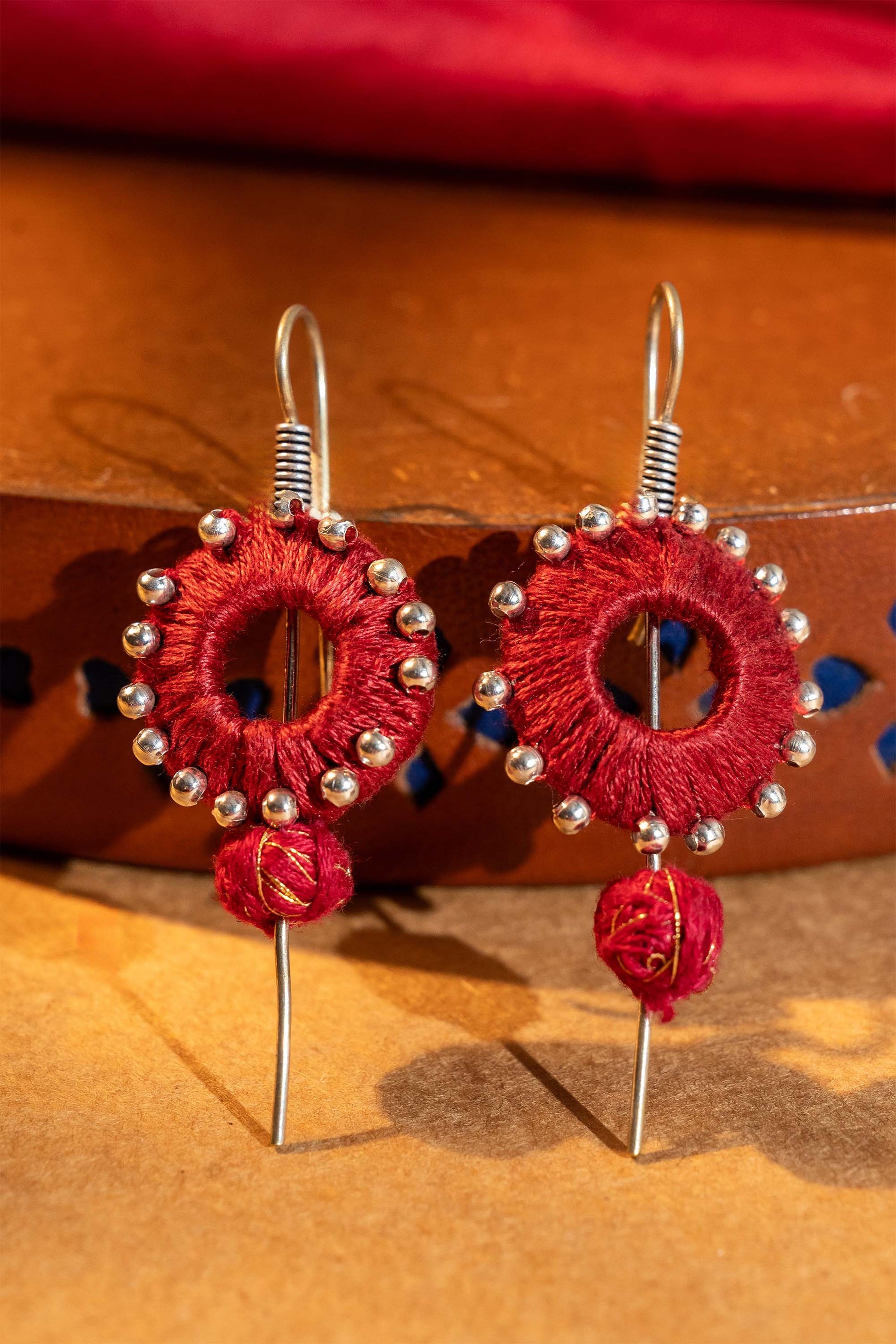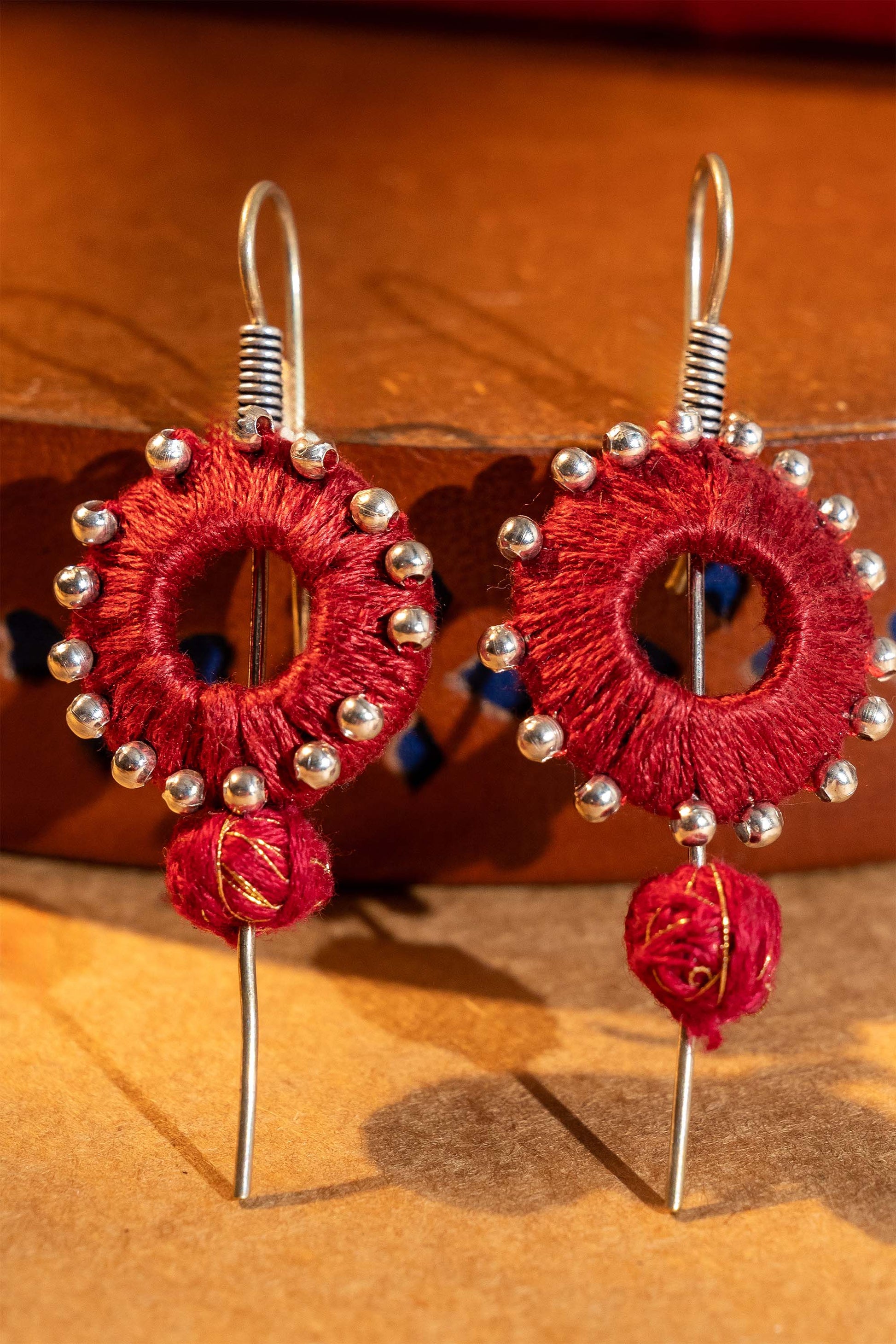 Add a vibrant festive touch to your Navratri look with this exquisite handmade earcuff from Craftroots. Designed with intricate metalwork and detailed hand embroidery, it features soft cotton thread in rich red hues. Delicately adorned with handcrafted thread balls, this accessory reflects the artistry of Indian craftsmanship. Its lightweight design makes it comfortable to wear for long celebrations and garba nights. Perfect for pairing with both traditional and fusion outfits, it adds an elegant pop of color and style. Each piece is handmade by skilled artisans, making it unique and special. Celebrate the season with accessories that carry stories of tradition and culture.