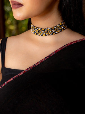 Admire the seed-beads handcrafted choker made with finer threads and beads. The multi-colour has beautiful designs for every fashion ensemble. This handmade choker is meticulously made by our artisans.