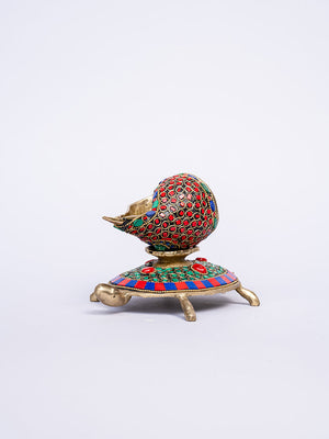 Admire the alluring shankh on tortoise piece presenting the holy values for our Indian festivities. It is in a gorgeous golden colour made from superior metal. This accent is originated from Uttar Pradesh.