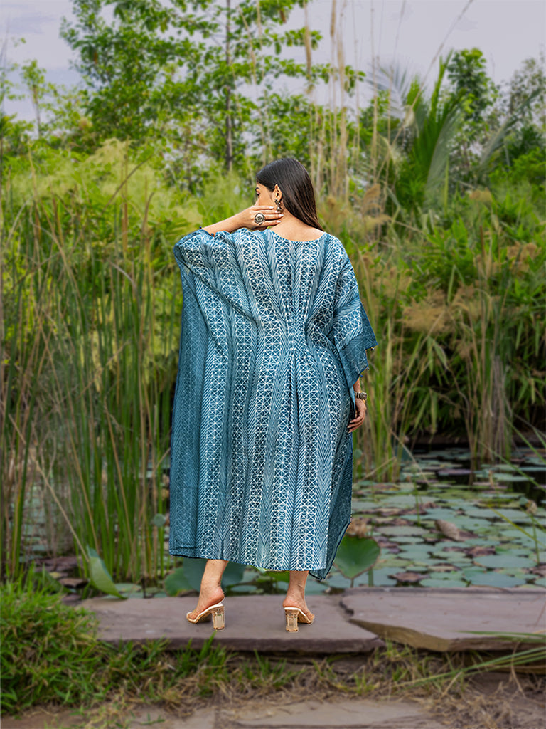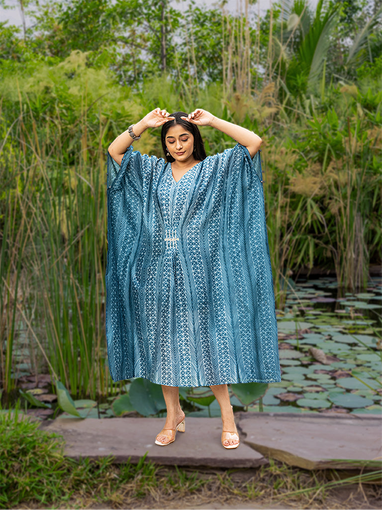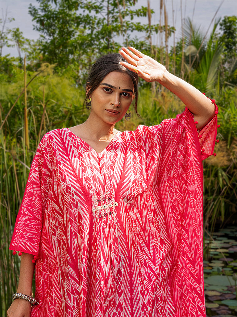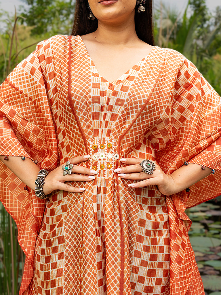 Shibori Pleated Kaftan with Mirror work