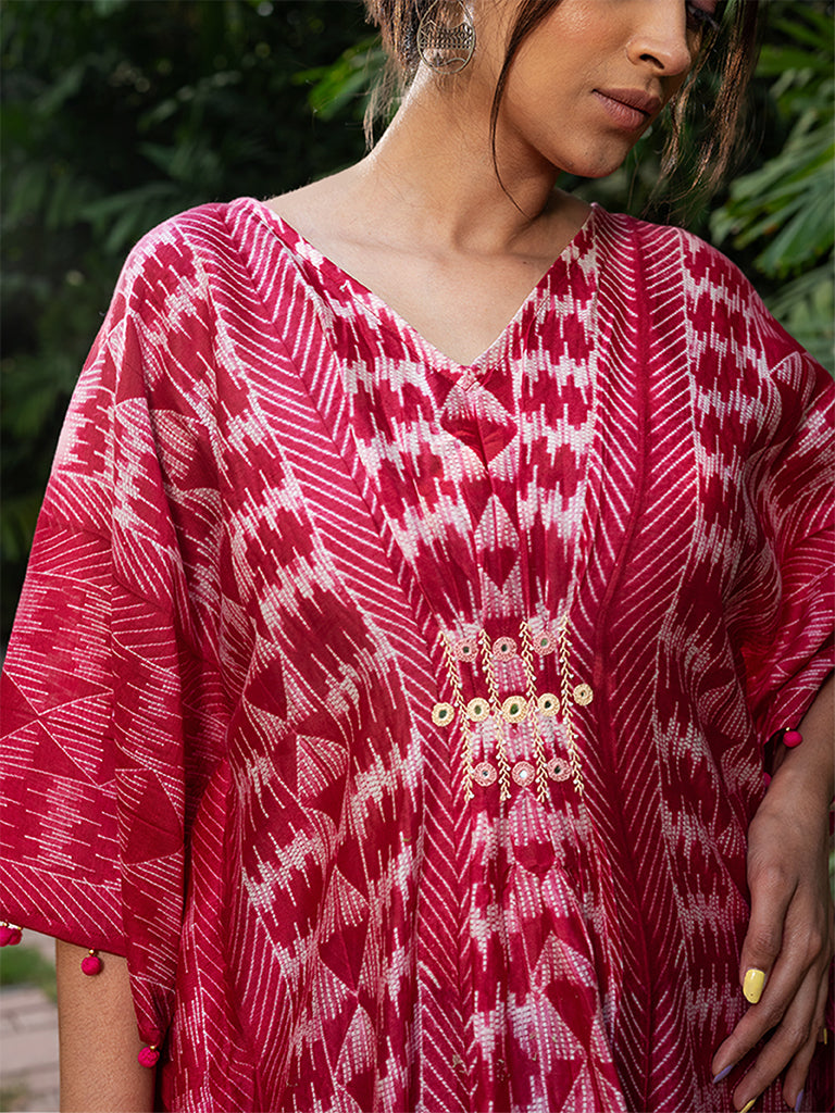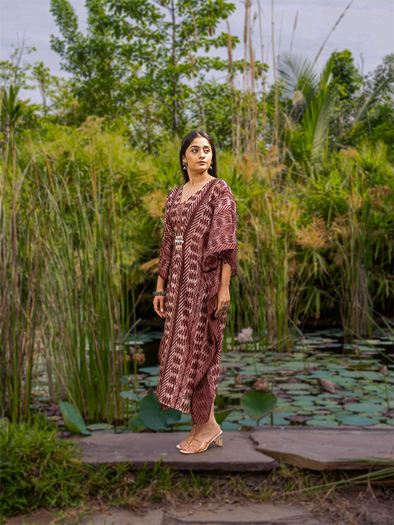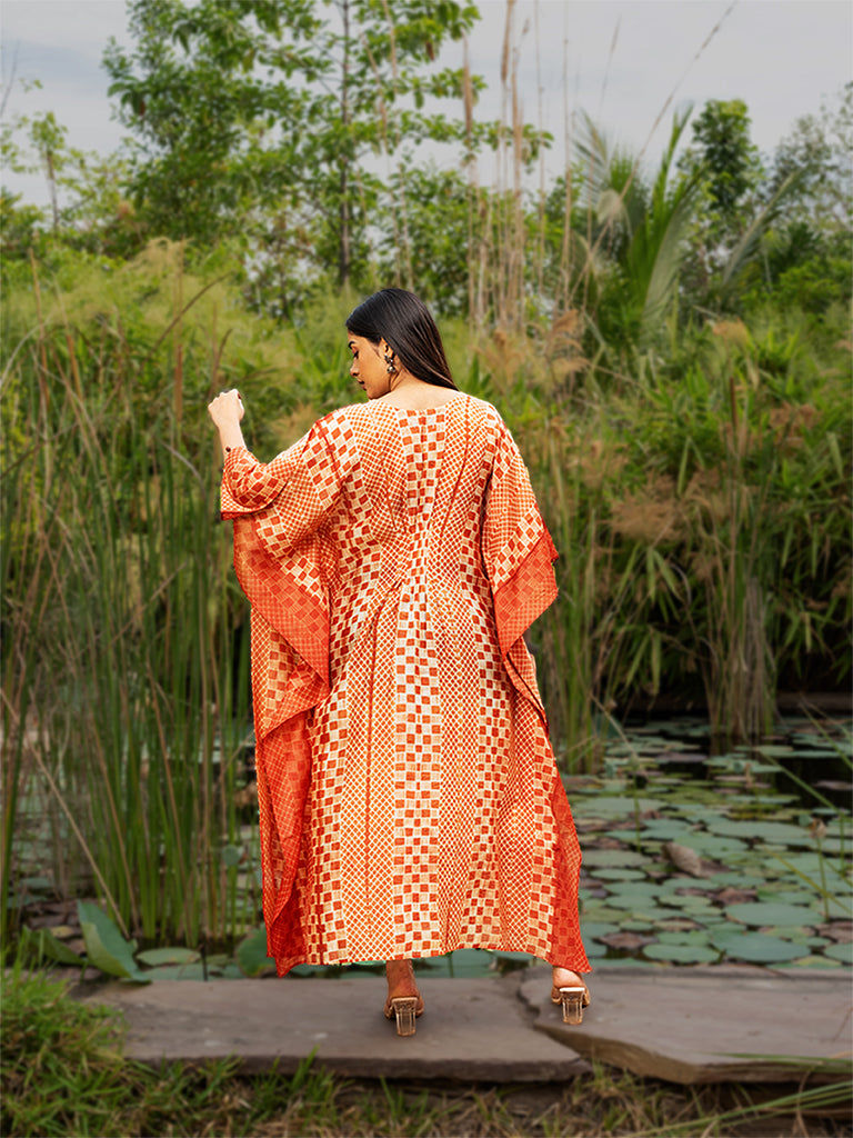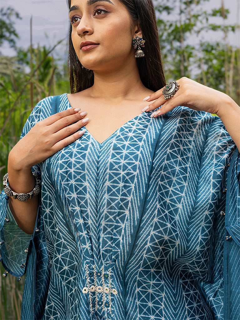 Shibori Pleated Kaftan with Mirror work