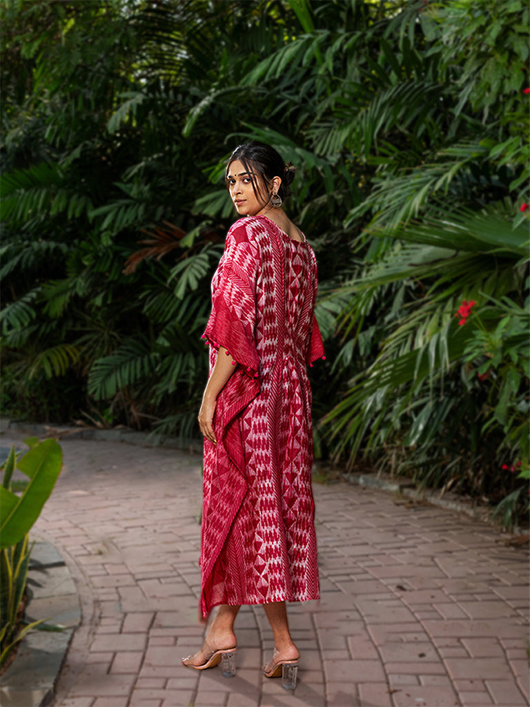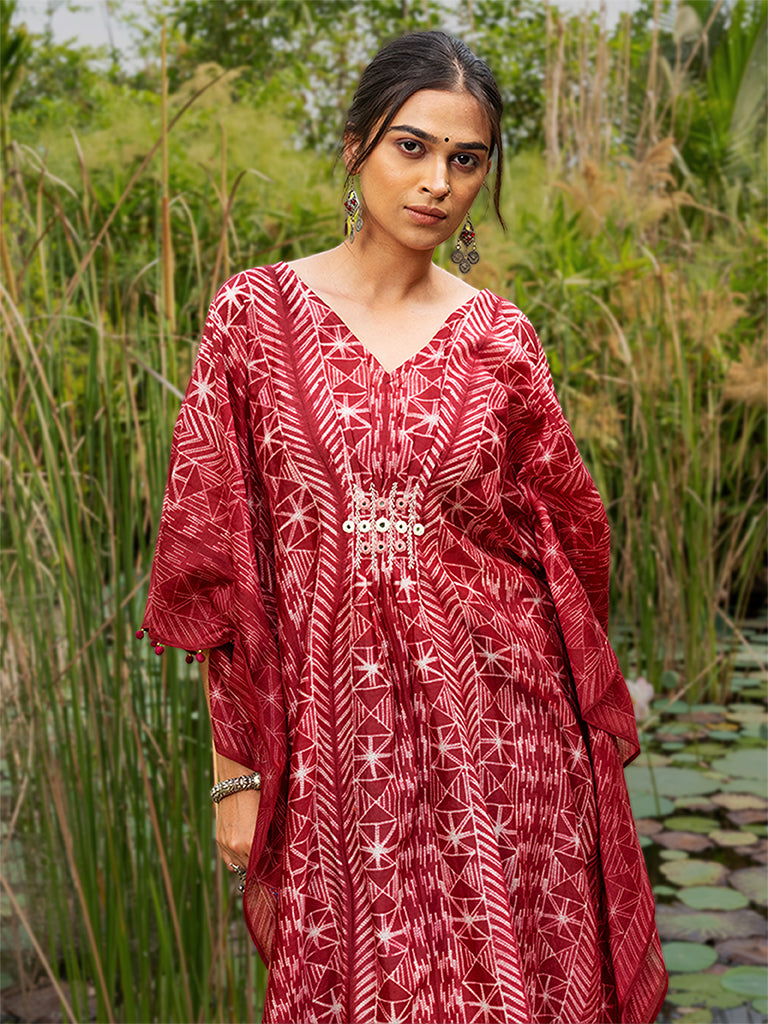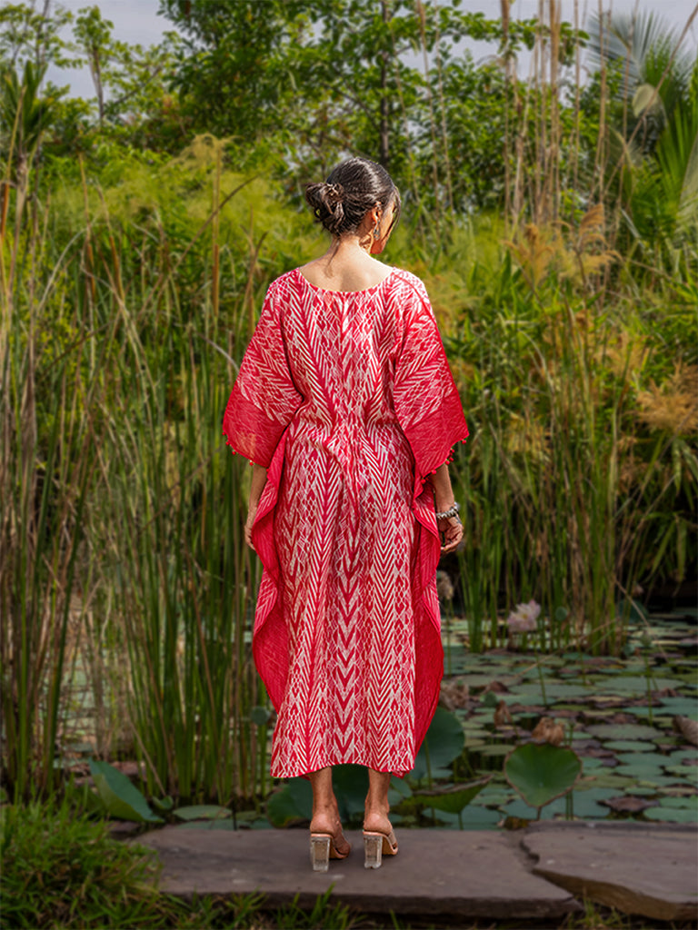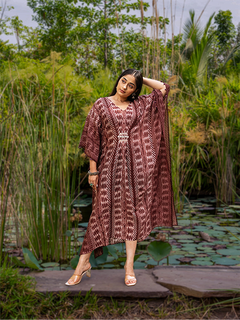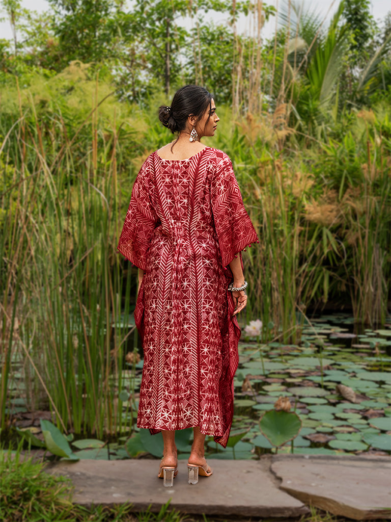 Marvel the splendour of shibori pleated kaftan with mirror work to uplift its style. This kaftan is made using superior chanderi fabric. Value the exclusivity of an iconic shibori pleated kaftan dress in your everyday cohesive look. Don't miss the chance to buy it from Craftroots before it gets sold out.