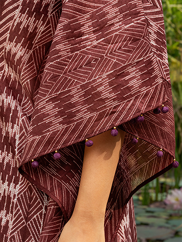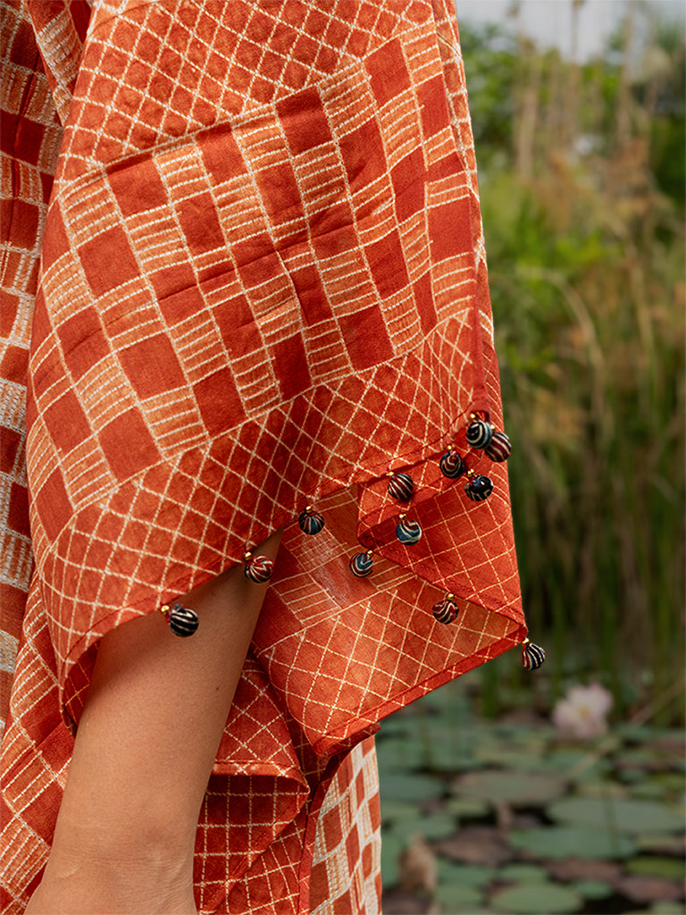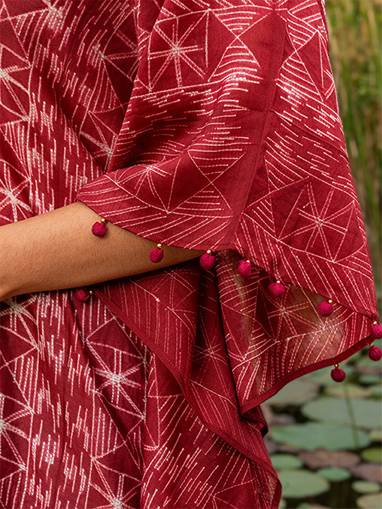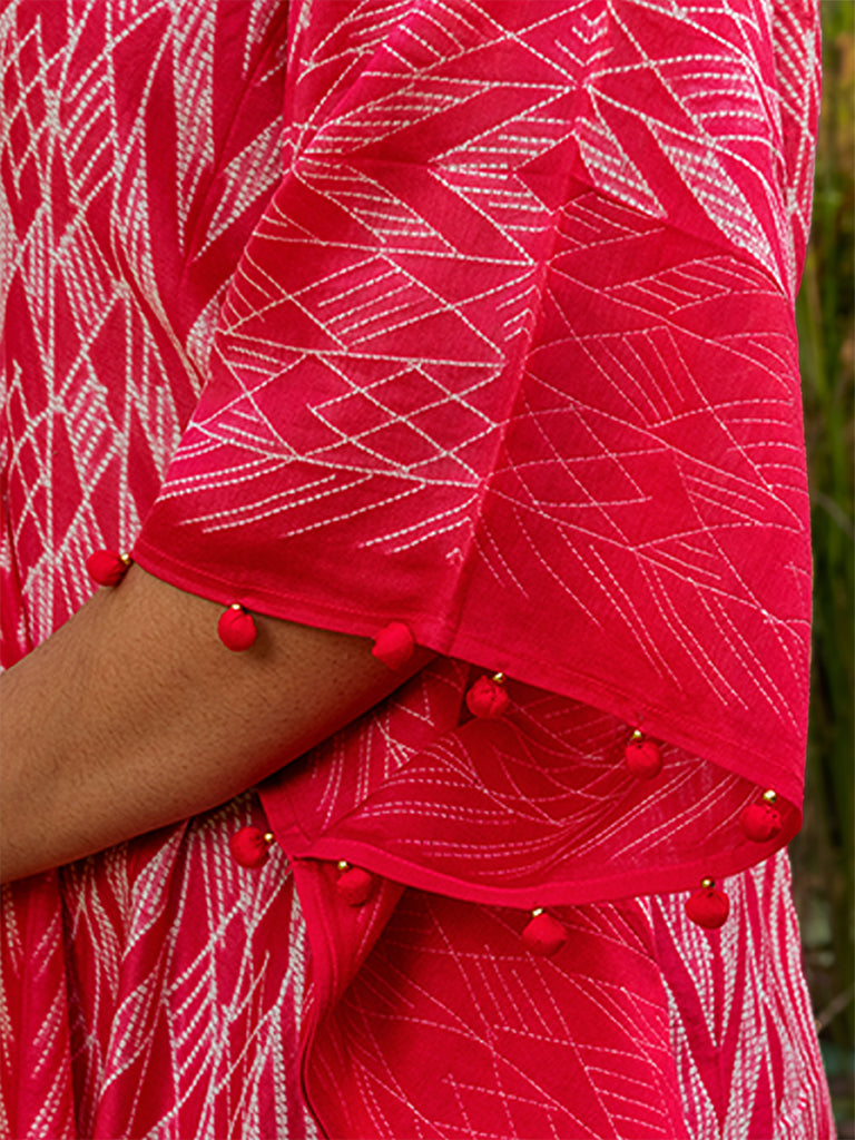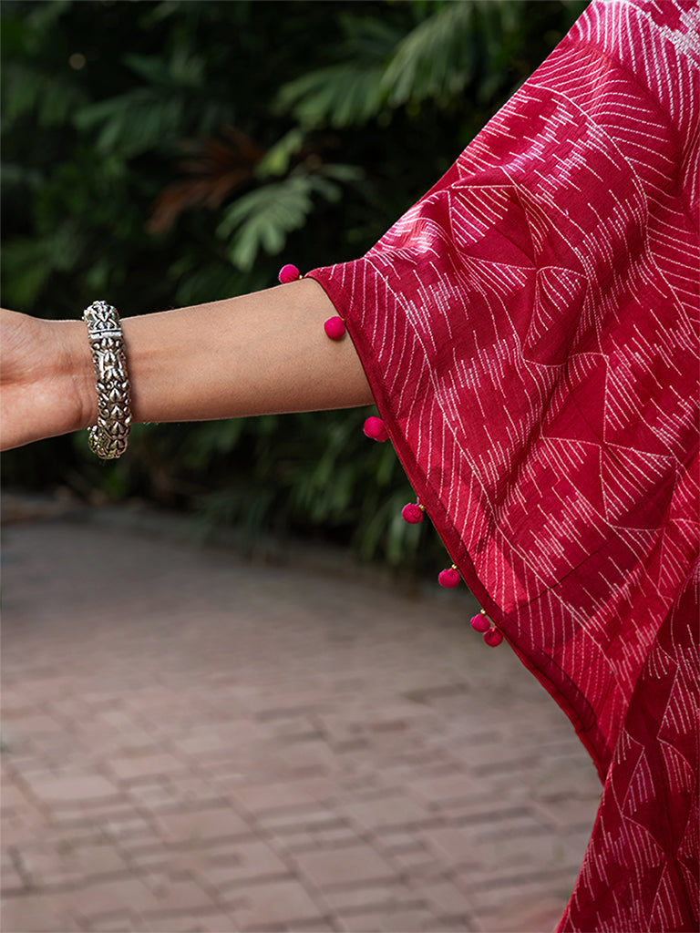Marvel the splendour of shibori pleated kaftan with mirror work to uplift its style. This kaftan is made using superior chanderi fabric. Value the exclusivity of an iconic shibori pleated kaftan dress in your everyday cohesive look. Don't miss the chance to buy it from Craftroots before it gets sold out.