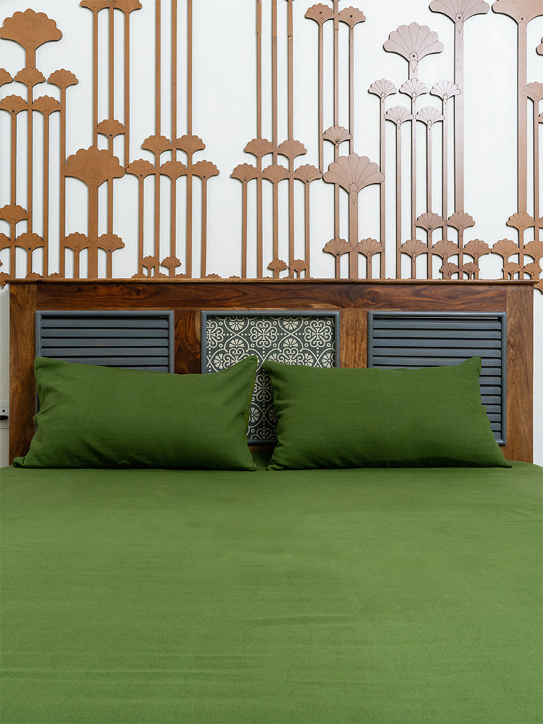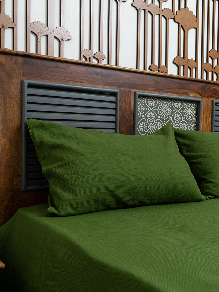 Give your space a touch of explicit essence with our handwoven weave bedsheet with pillow covers. A cherished gift for every new home. This is a stunning green bedsheet set.